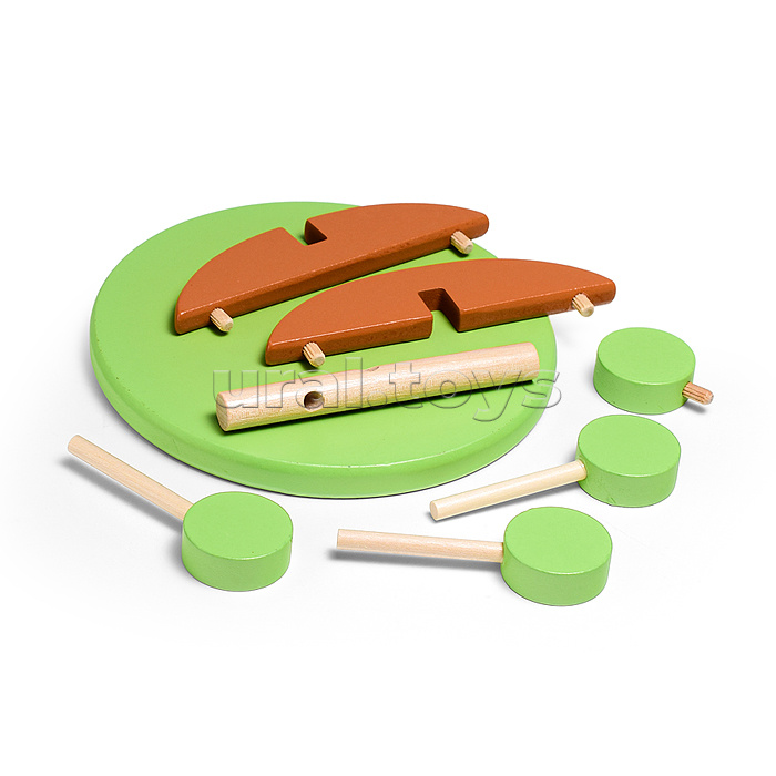 Стучалка: клей везде торчит, кружочки отклеелись, шарики не ровные(может так и надо), плохо отшлифованое дерево. Видно на фото.