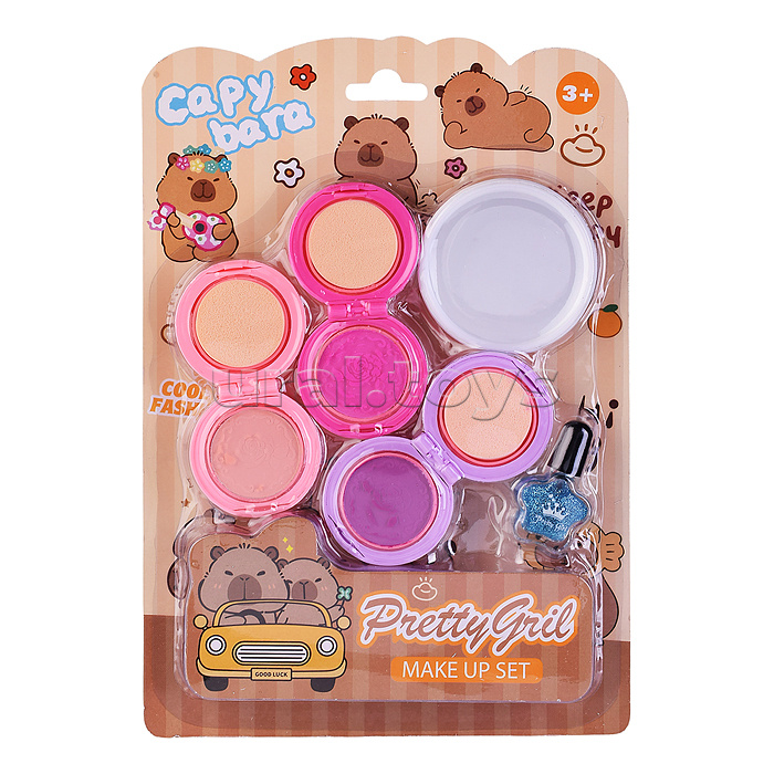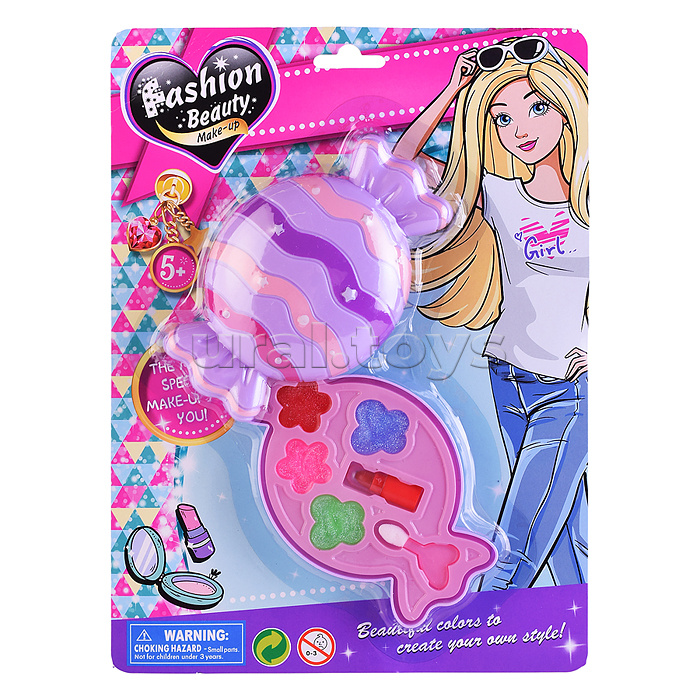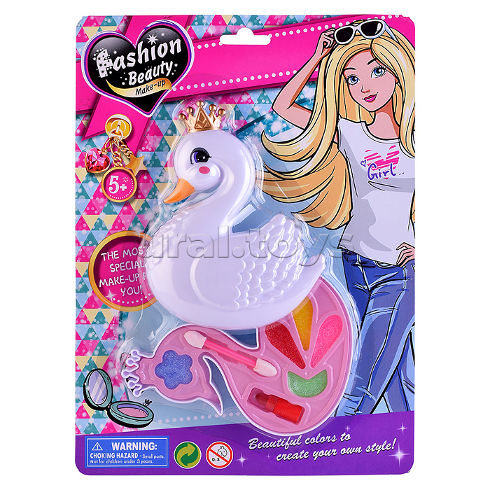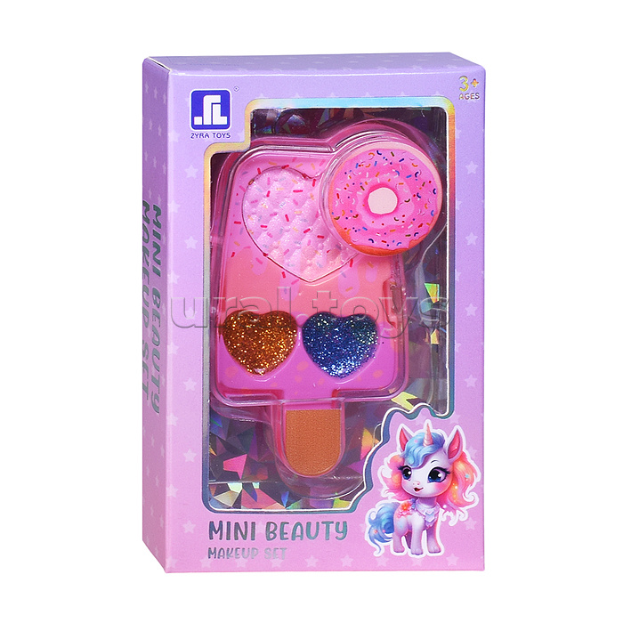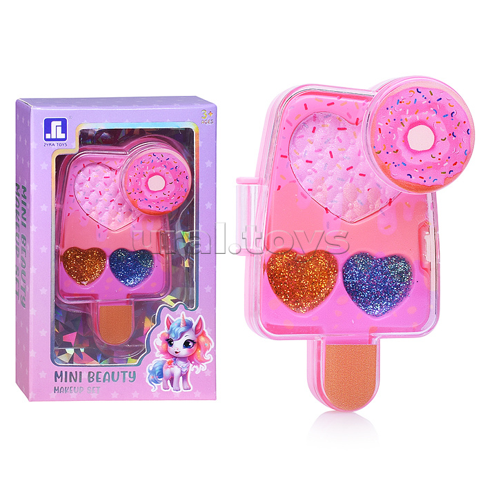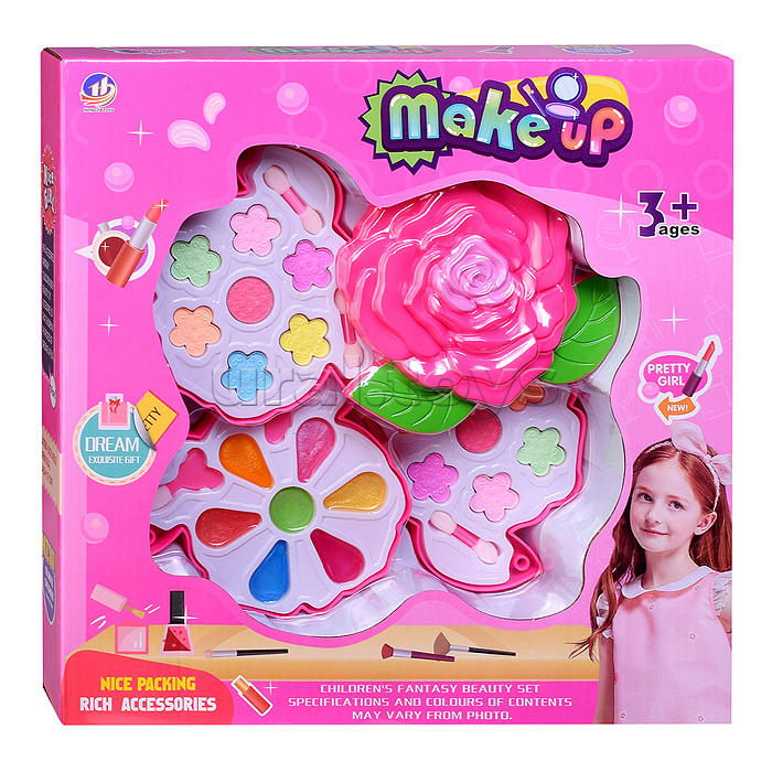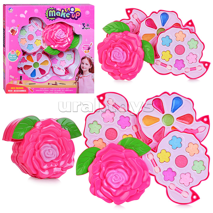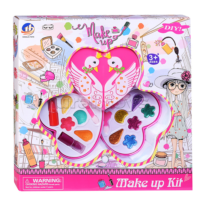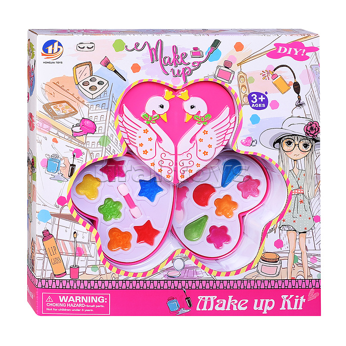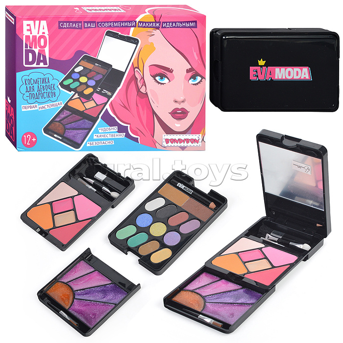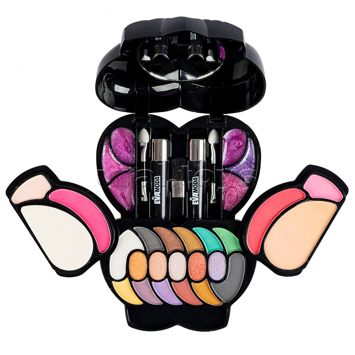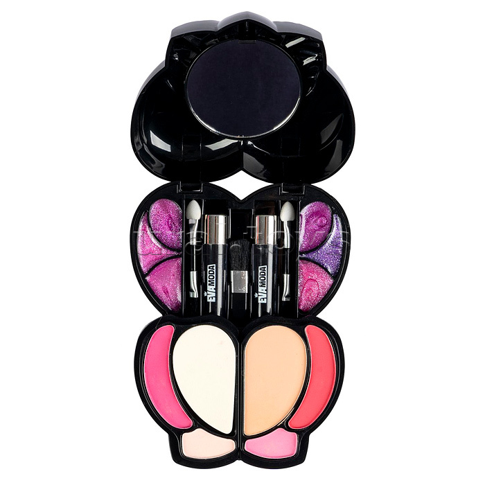 Набор детской декор. косметики Eva Moda, BOX 11,7х10,5х4,2 см; тени для век-8 шт.(7,84г), блеск для губ-3шт.(4,8г), румяна-1шт.(4г), пудра-1шт.(7,2г), аппликатор-2шт., зеркало-1шт.,