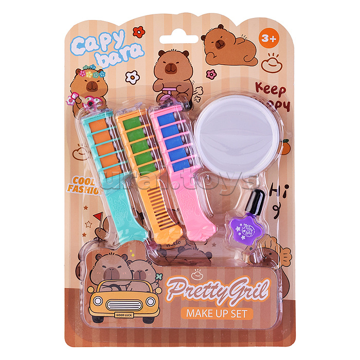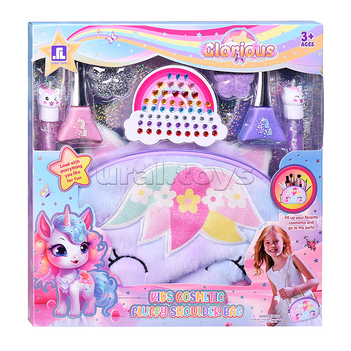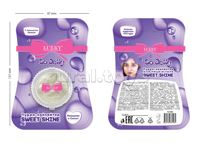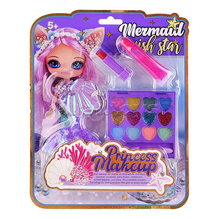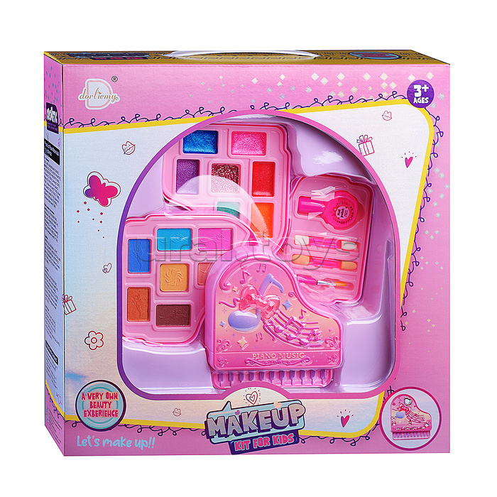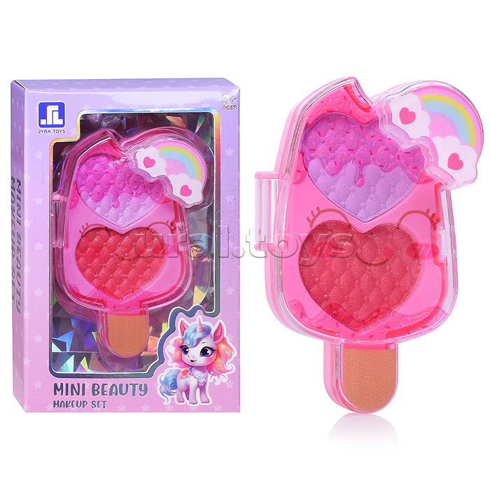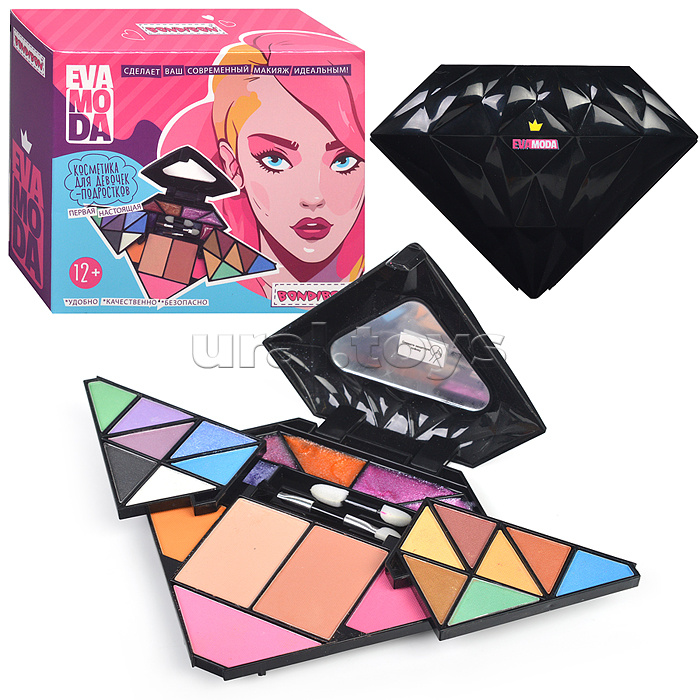 Набор детской декор. косметики Eva Moda, BOX 14х14х4,5 см; тени для век-4шт.(3,84г), блеск для губ-9шт.(6,48г), румяна-2шт.(1,92г), тушь-1шт.(1,6г), косметический карандаш-1шт.(0,56г), аппликатор-2шт., зеркало-2шт.,