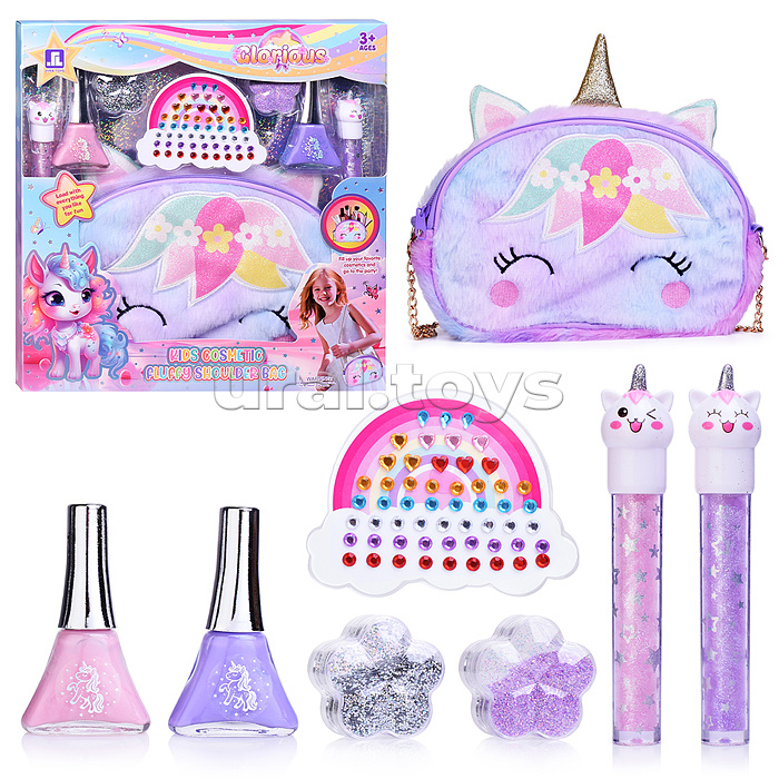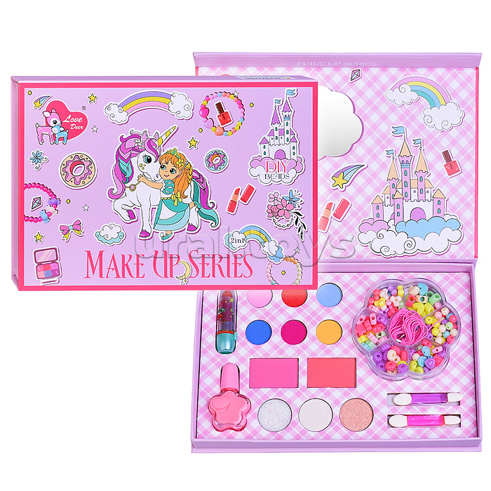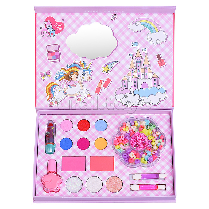 Набор детской декор. косметики BOX 21,2х14х2,6 см; тени для век-13шт.(9,2г), блеск для губ-5шт.(5,8г), румяна-6шт.(9,6г),косметический карандаш-1шт.(0,5г), аппликатор-4шт., зеркало-1шт