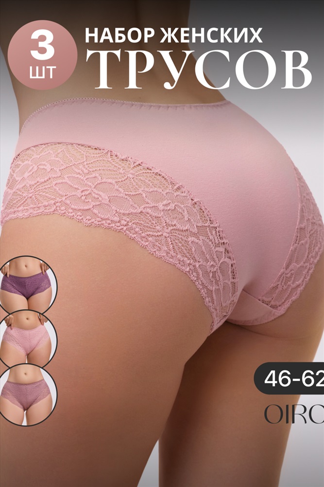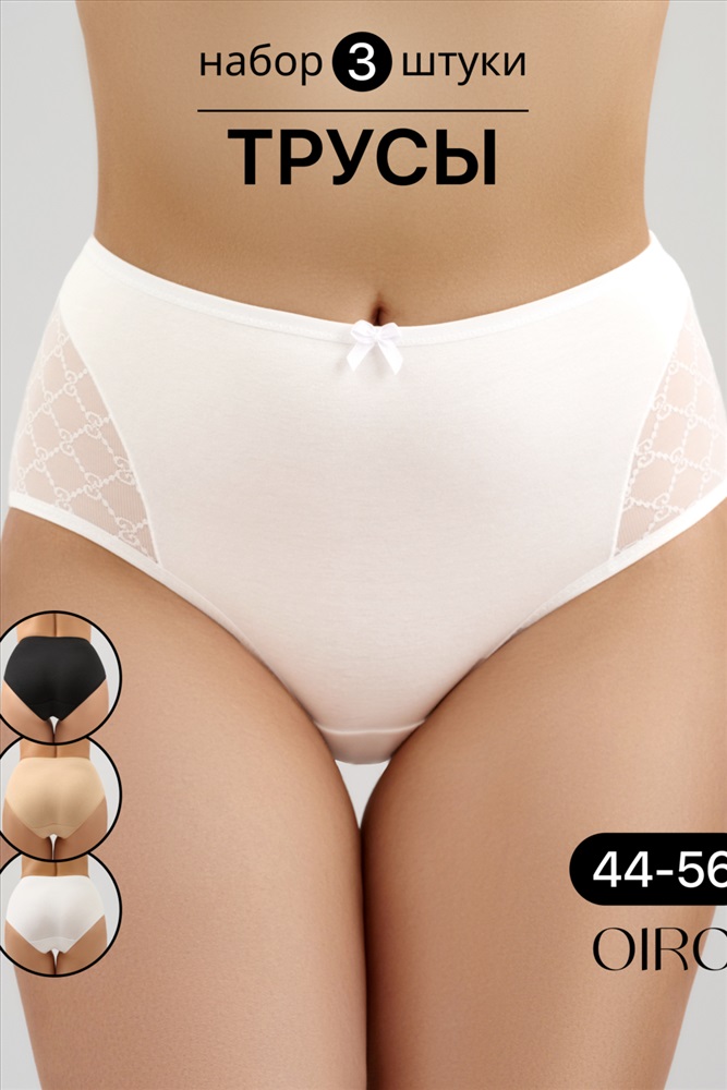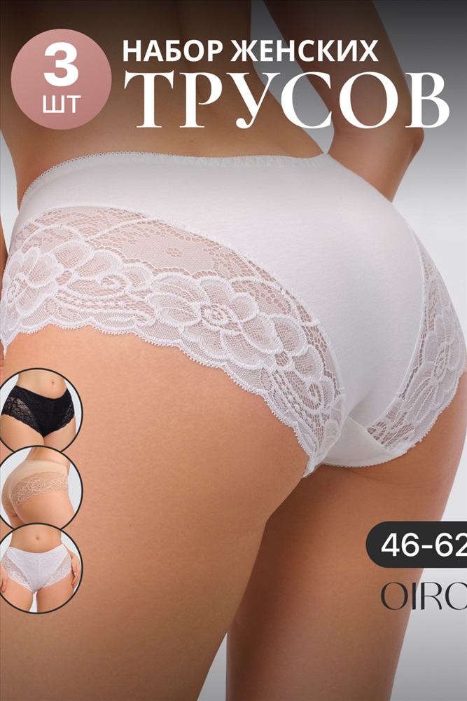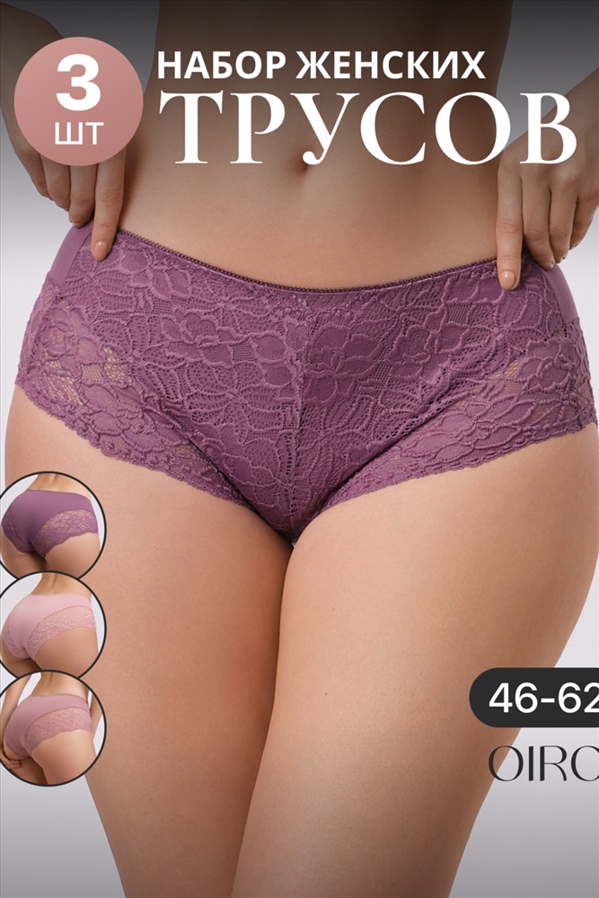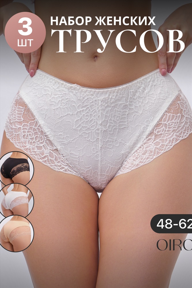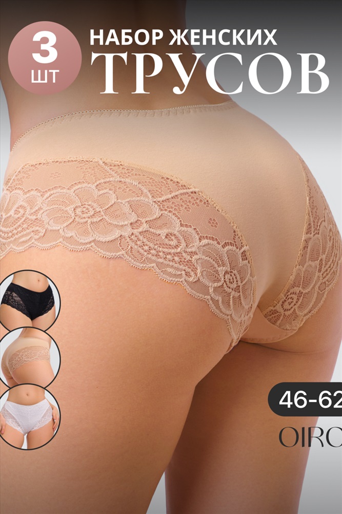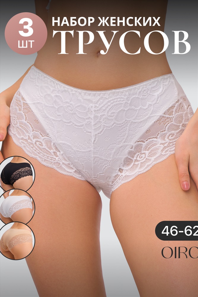 Набор трусов OIRO 901 бесшовные слипы с кружевом 44-56 3 шт 10 фото
