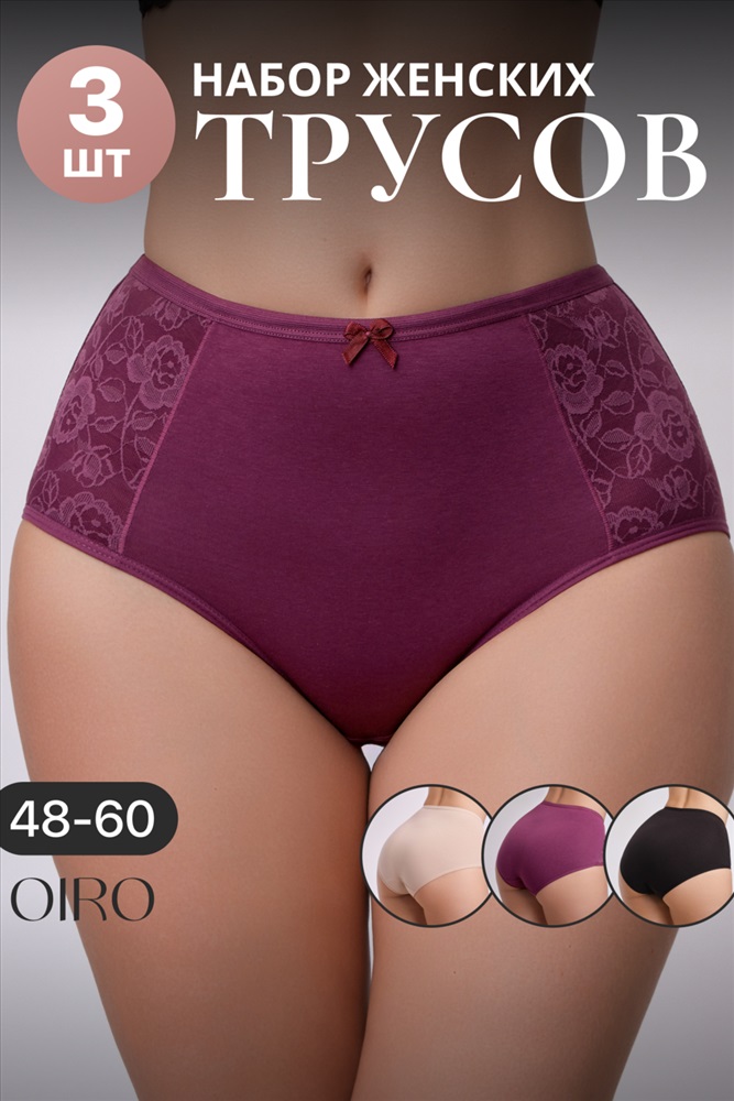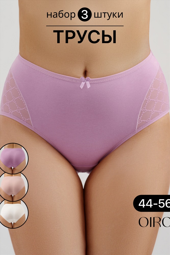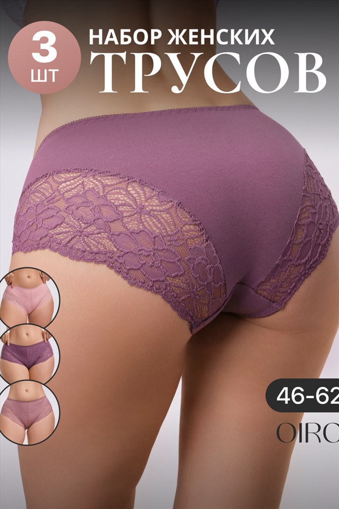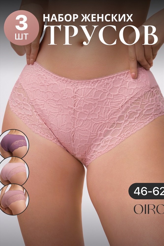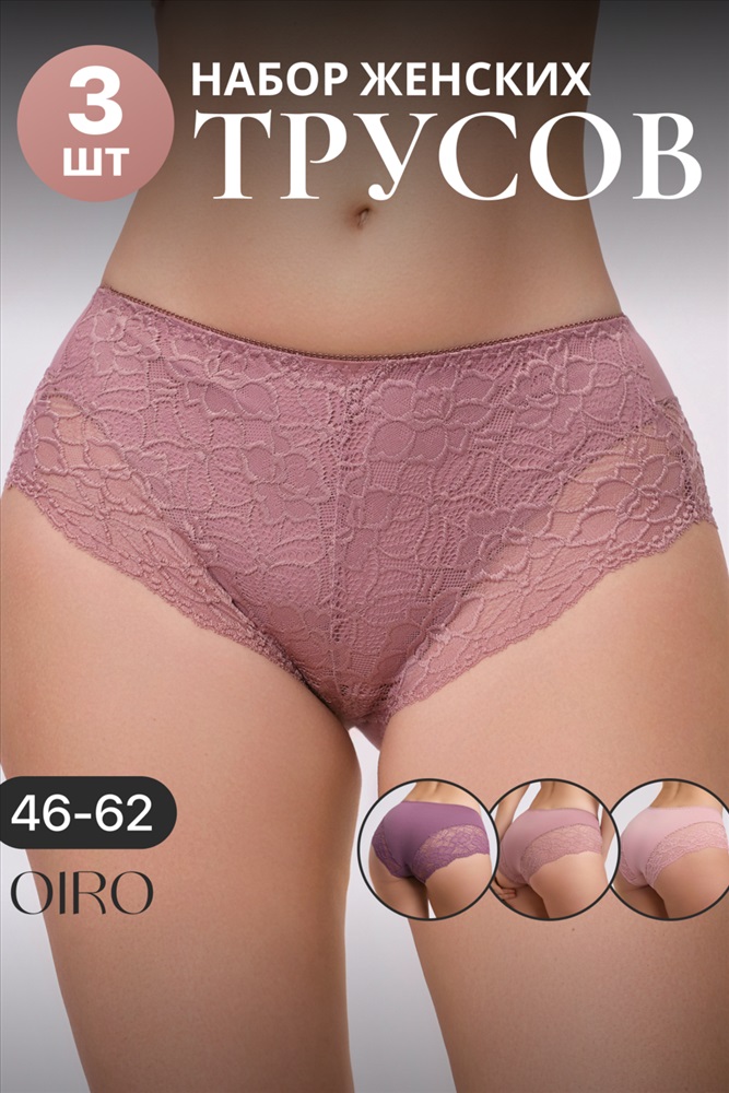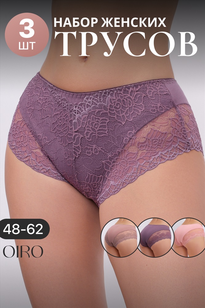 Набор трусов OIRO 901 бесшовные слипы с кружевом 44-56 3 шт 10 фото