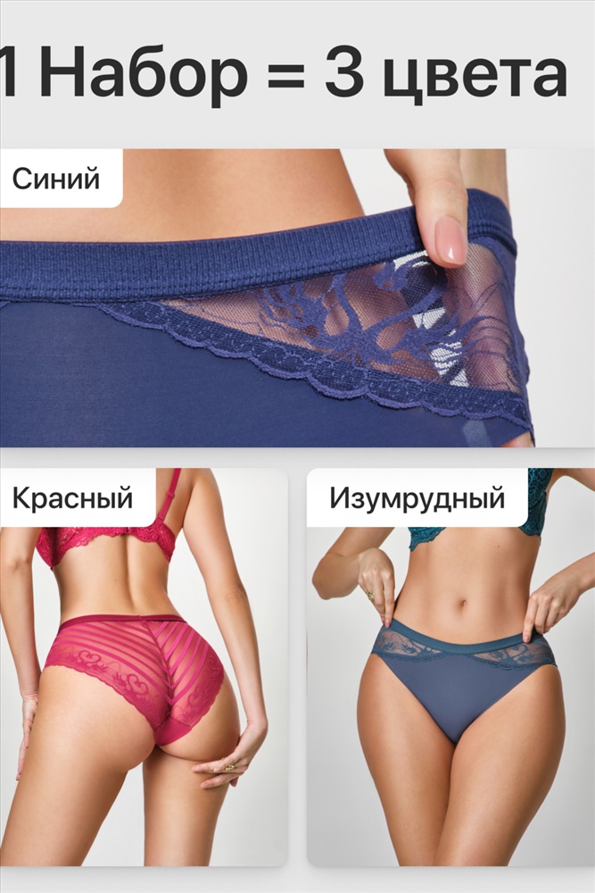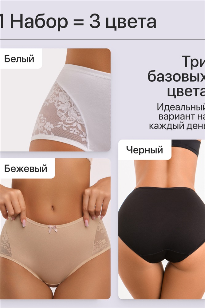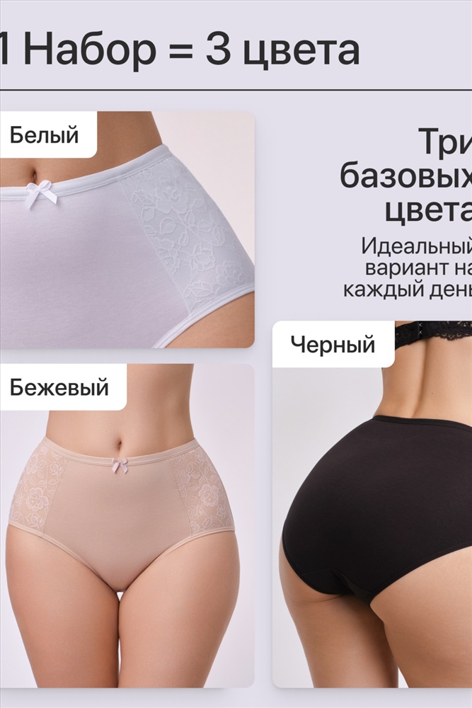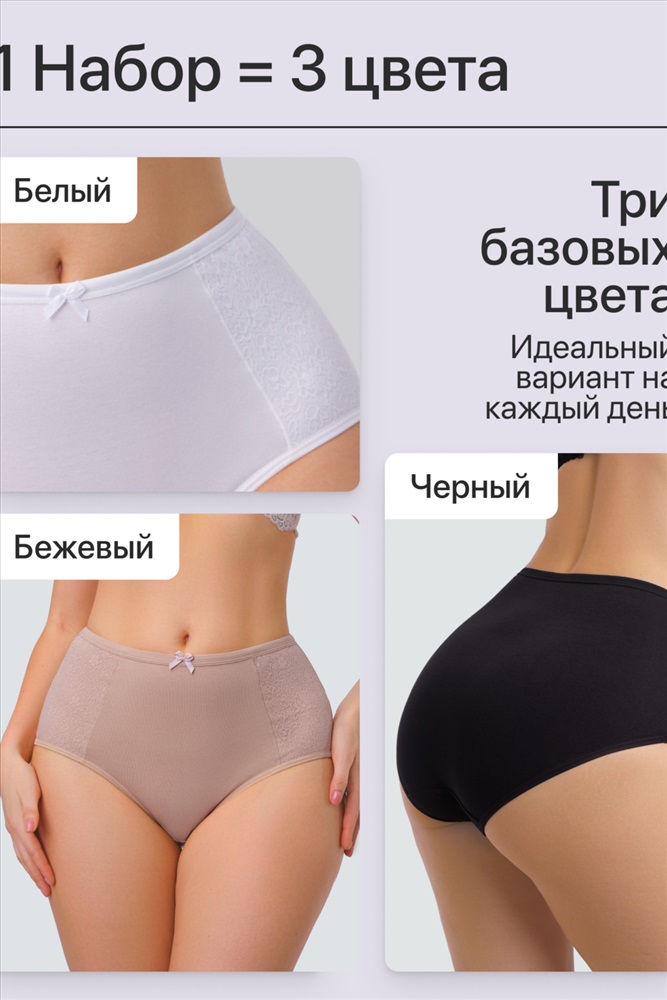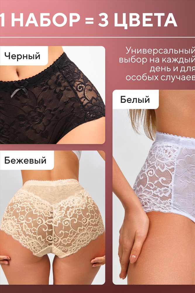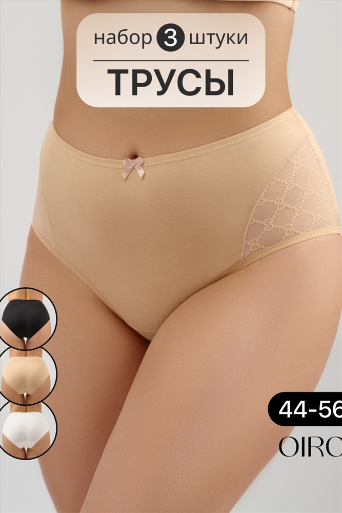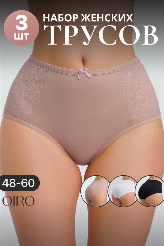 Набор трусов OIRO 901 бесшовные слипы с кружевом 44-56 3 шт 10 фото
