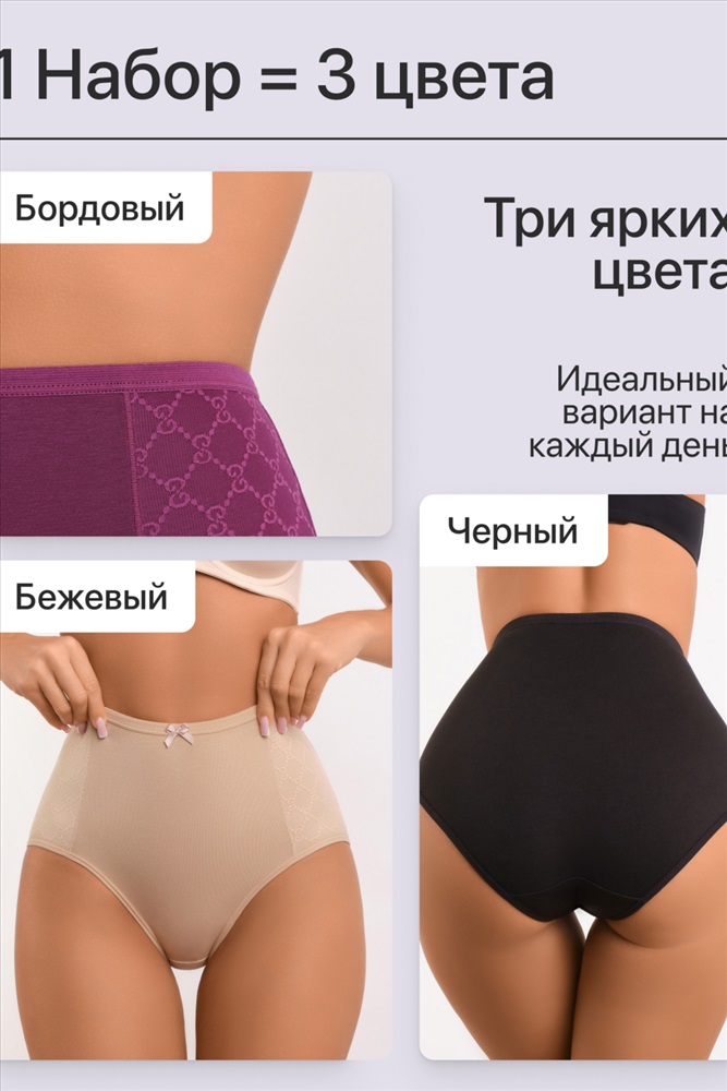 Набор трусов 8001 OIRO хлопковые с узором 3 шт. 10 фото