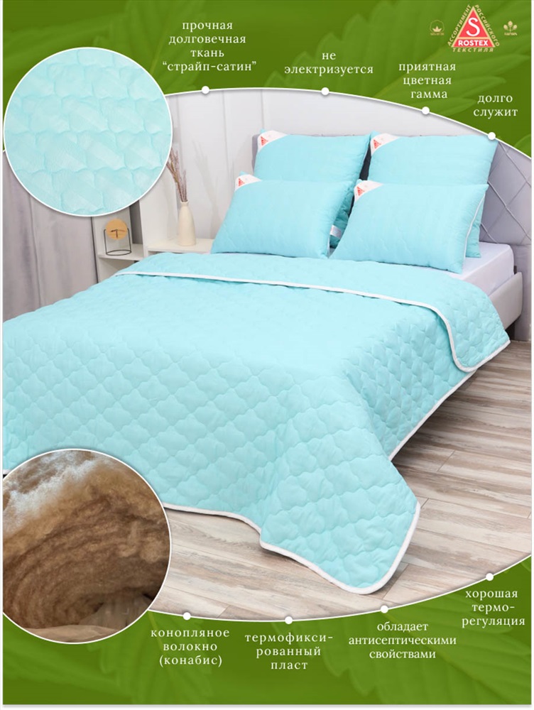 Одеяло Конопляное волокно пл.150гр/м2, коллекция линейки Люкс из натуральных наполнителей 4 фото