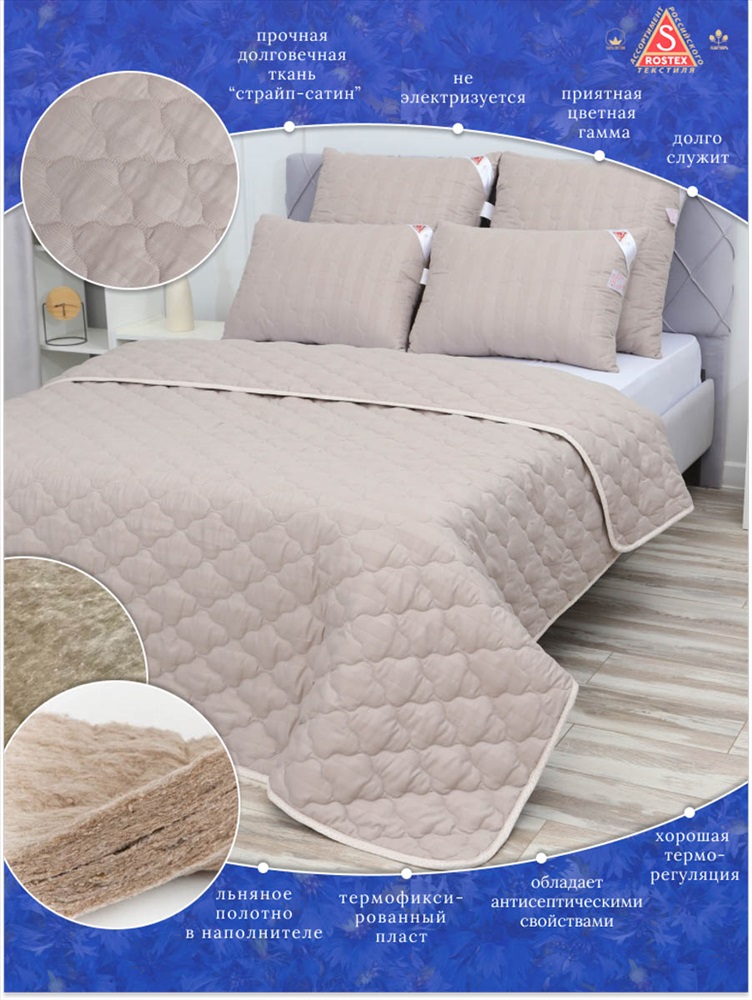 Одеяло Лён плотностью 150гр.м2, коллекция линейки Люкс из натуральных наполнителей. 4 фото