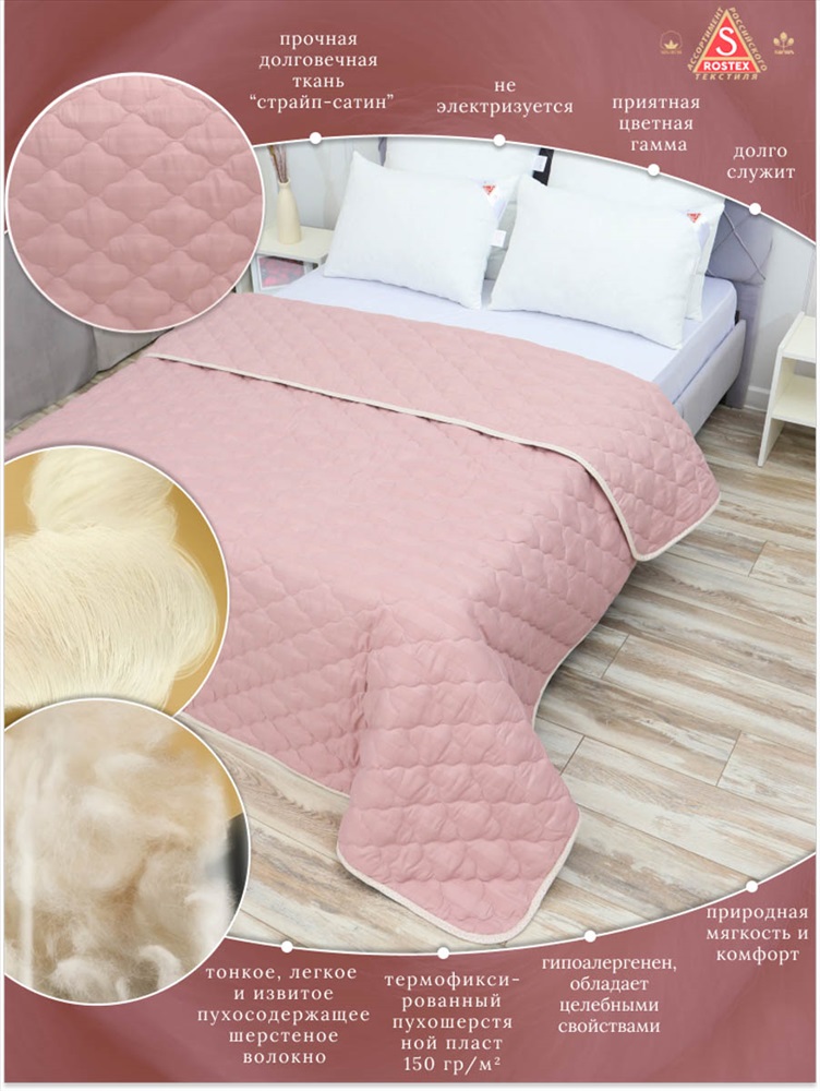 Одеяло с шерстью овечки породы Рамбулье всесезонное 4 фото
