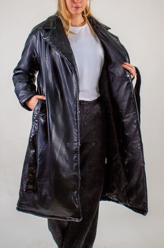 Стеганое теплое пальто из экокожи, арт.355 6 фото