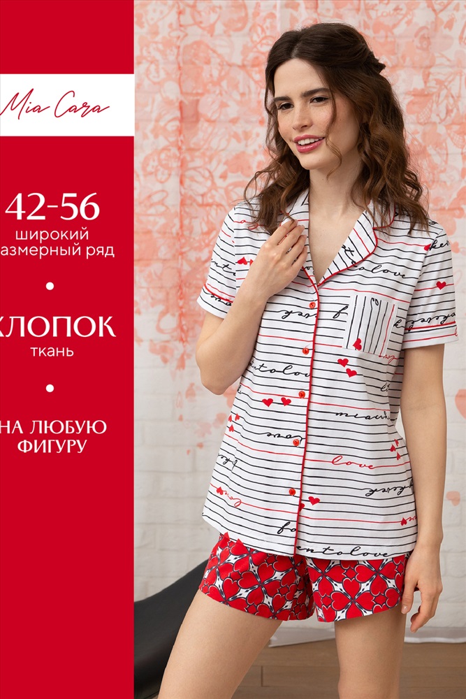 Комплект жен: жакет к/рук, шорты Mia Cara SS23WJ326 Te Amo белый/красный сердечки/полоска 10 фото