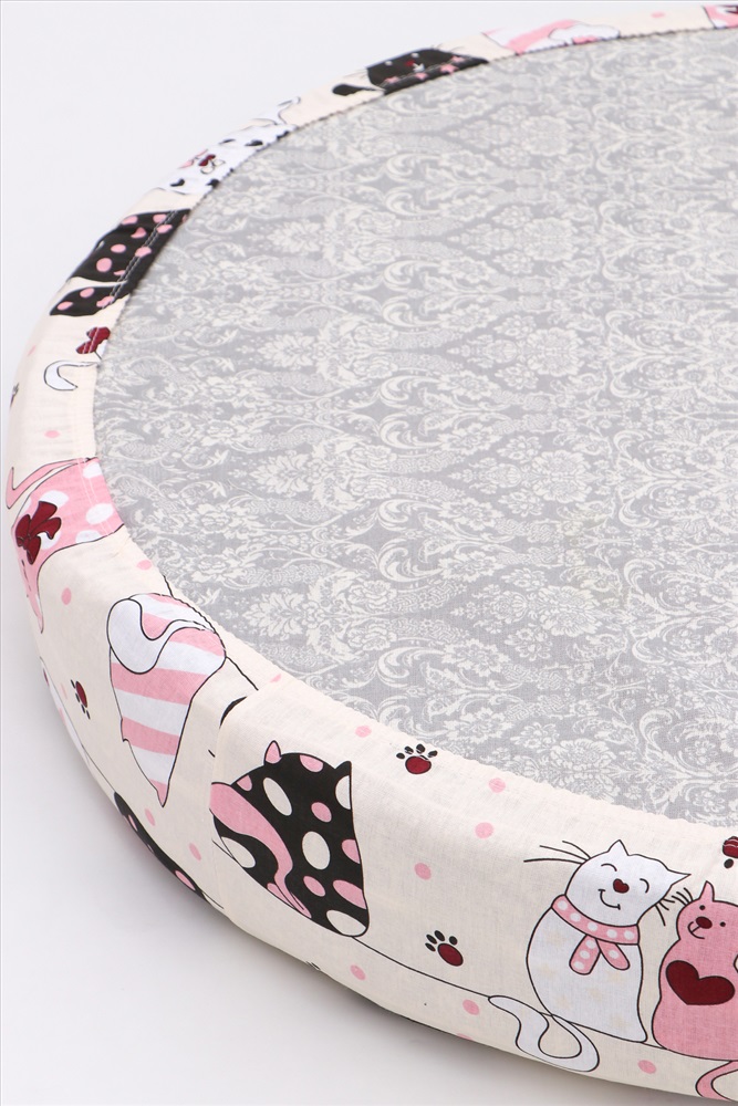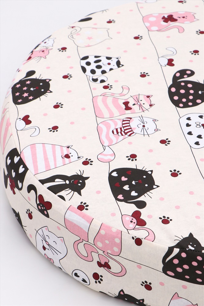 Простыня на резинке из бязи на овальный матрас 125х75, арт. ПРГ-ОВ/котики на бежевом 5 фото