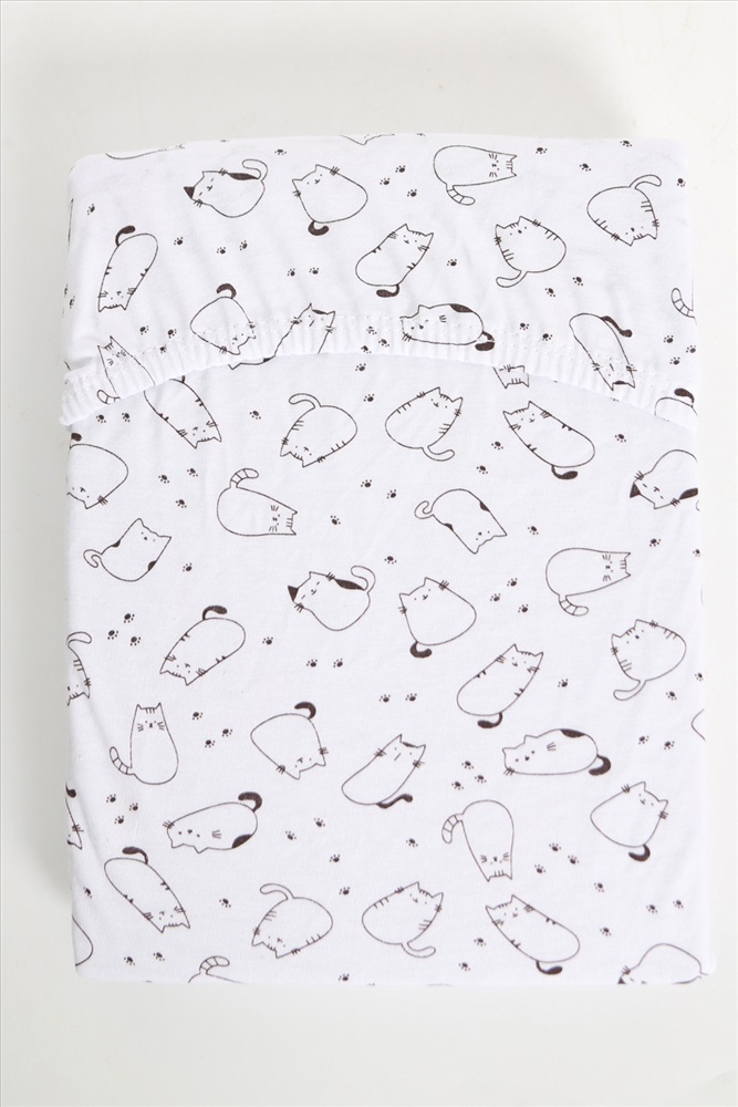 Простыня на резинке трикотажная на прямоугольный матрас 120х60, арт. ПРК/киски 3 фото