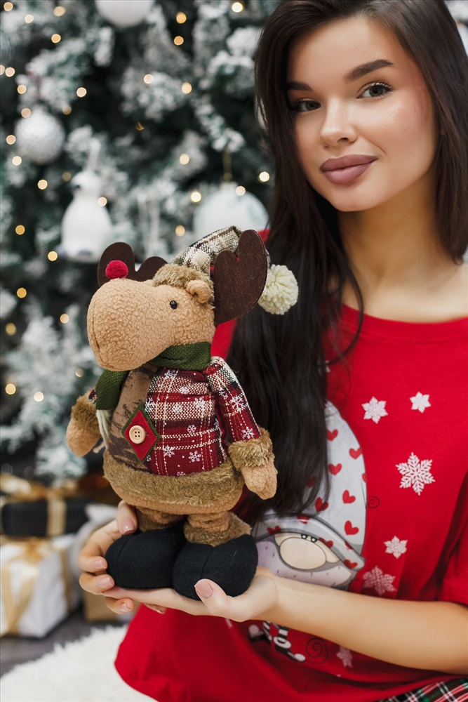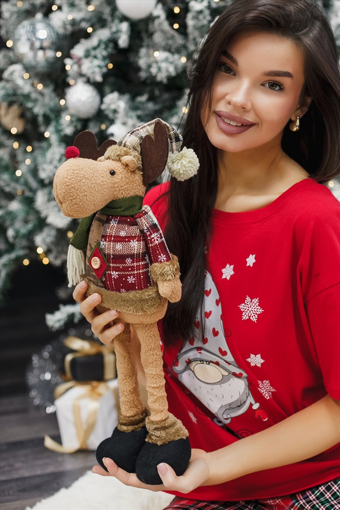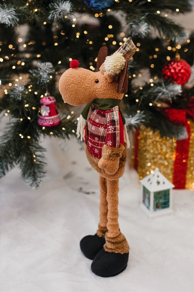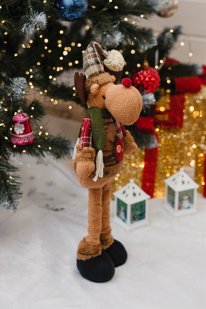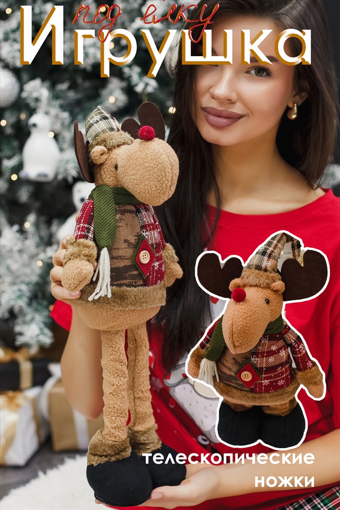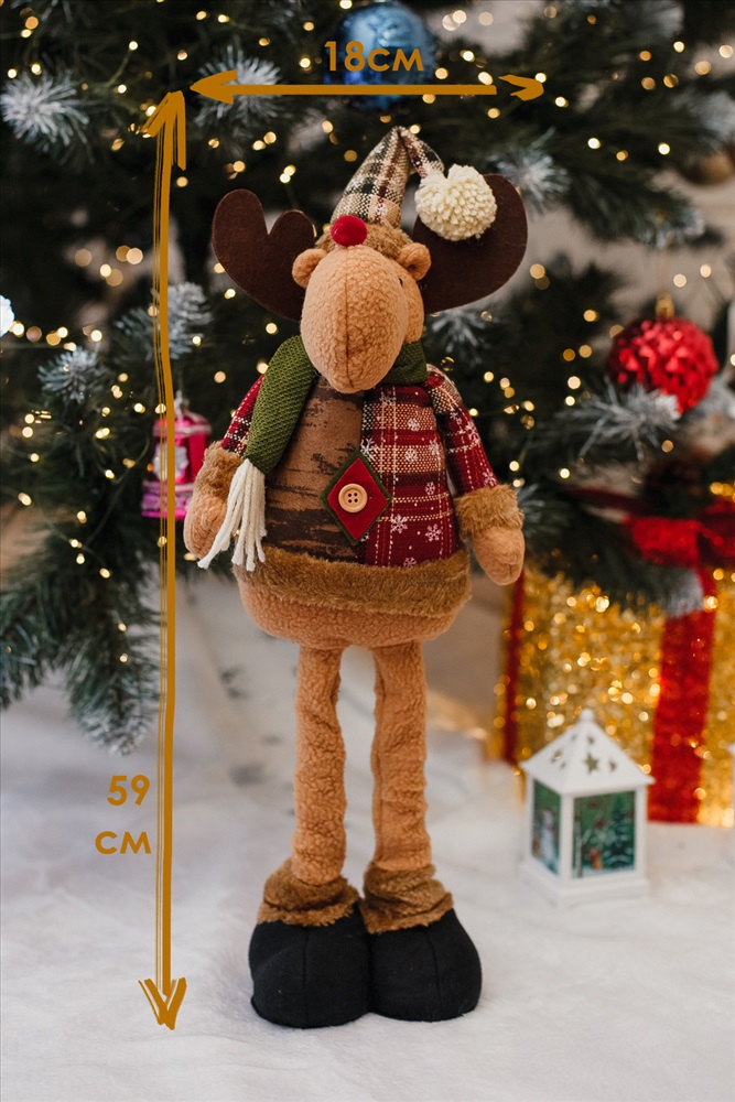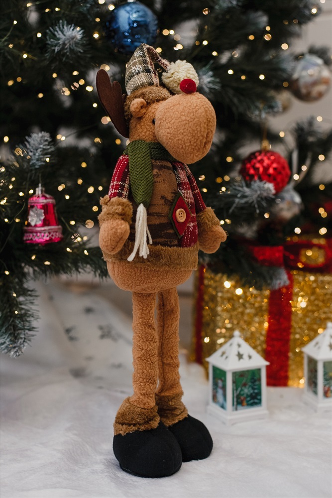 Игрушка новогодняя с выдвижными ногами Олень черные ботинки коричневый 10 фото