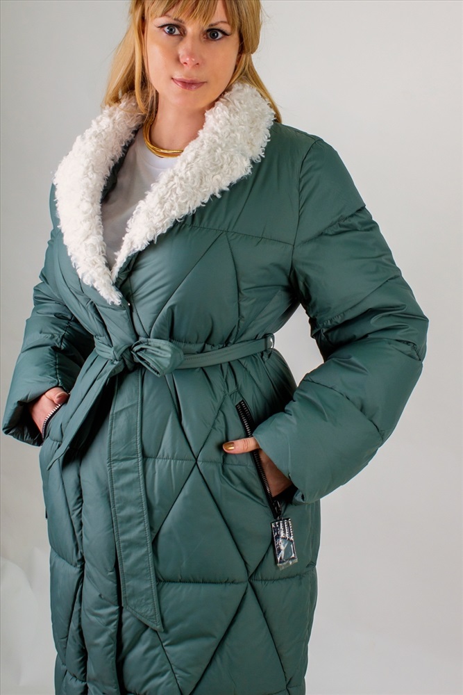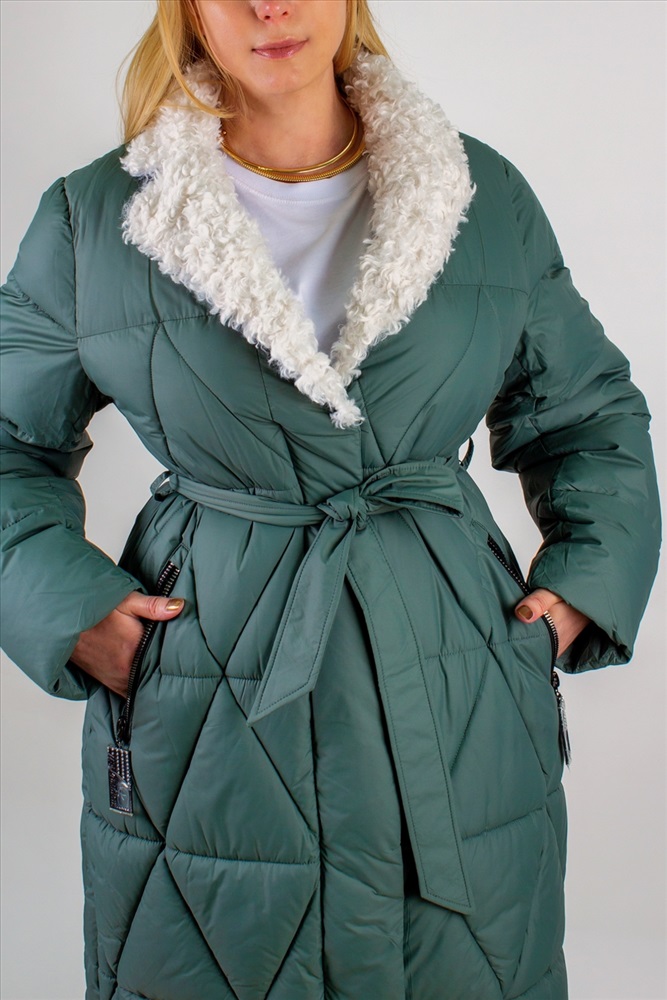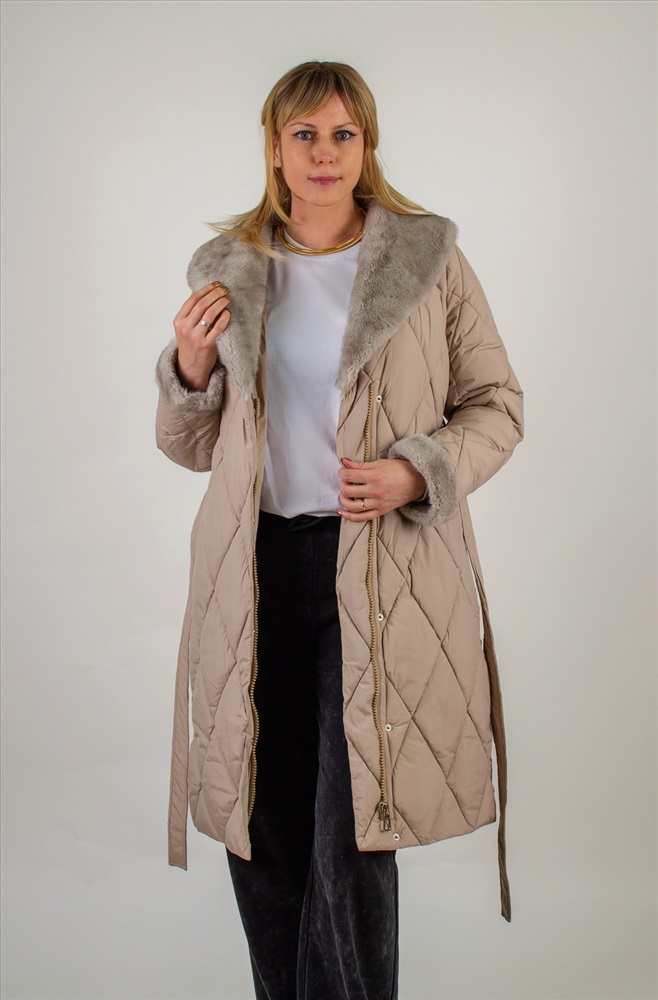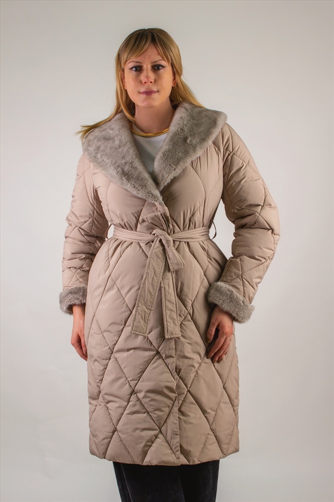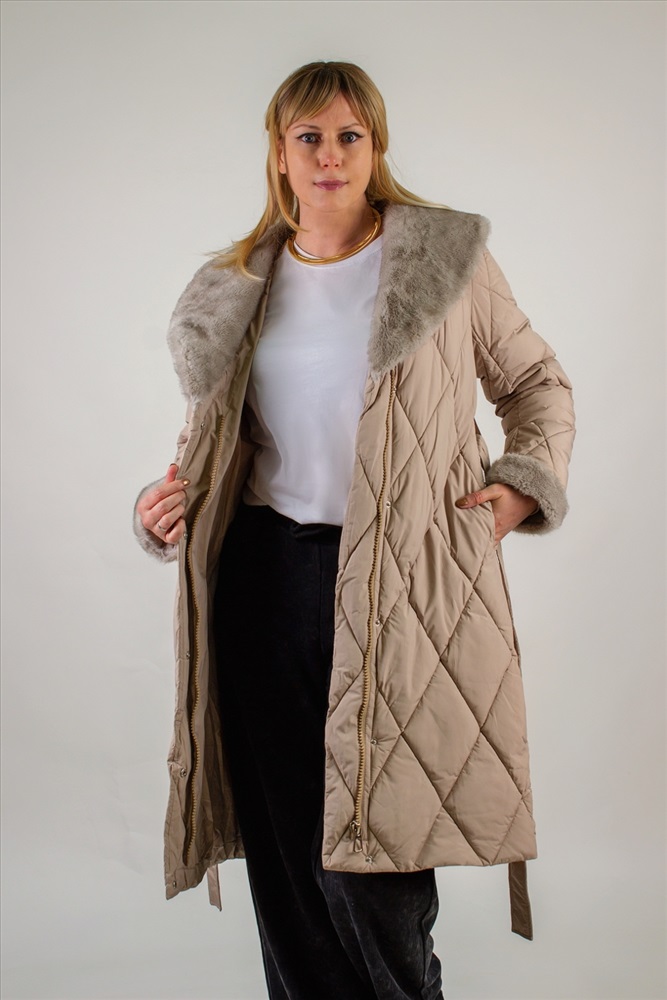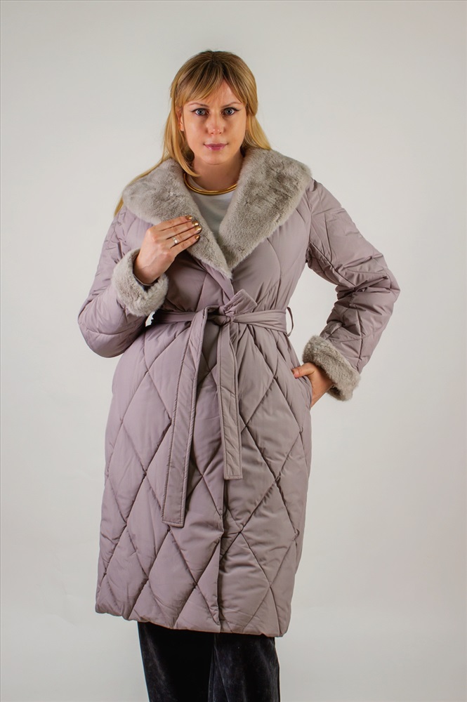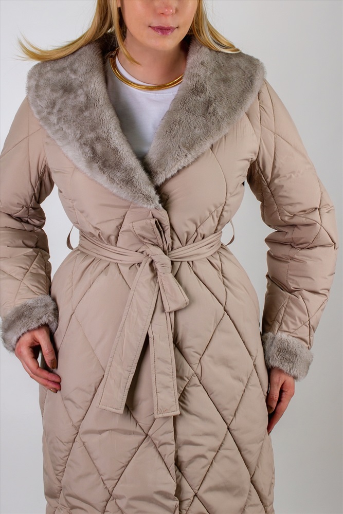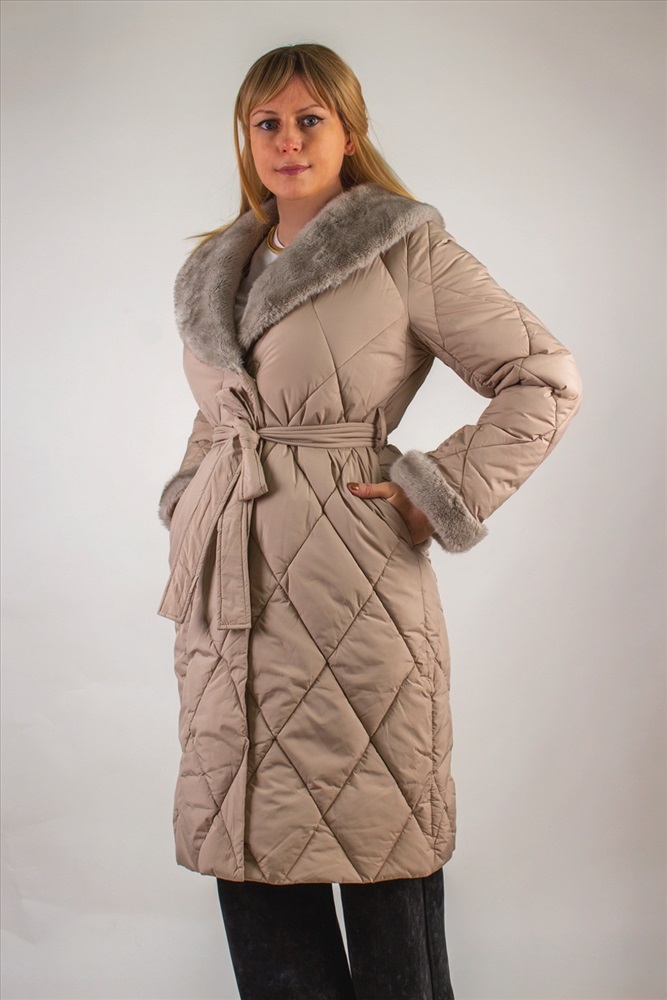Стеганое пальто с меховой отделкой арт. 23153 10 фото