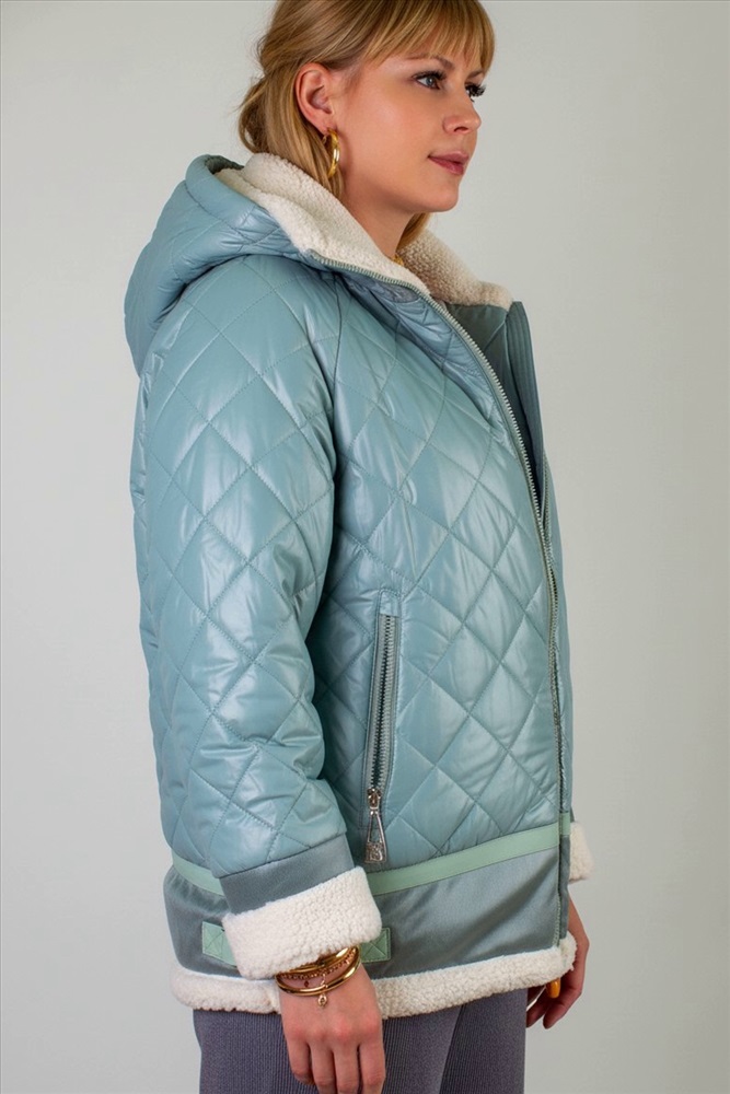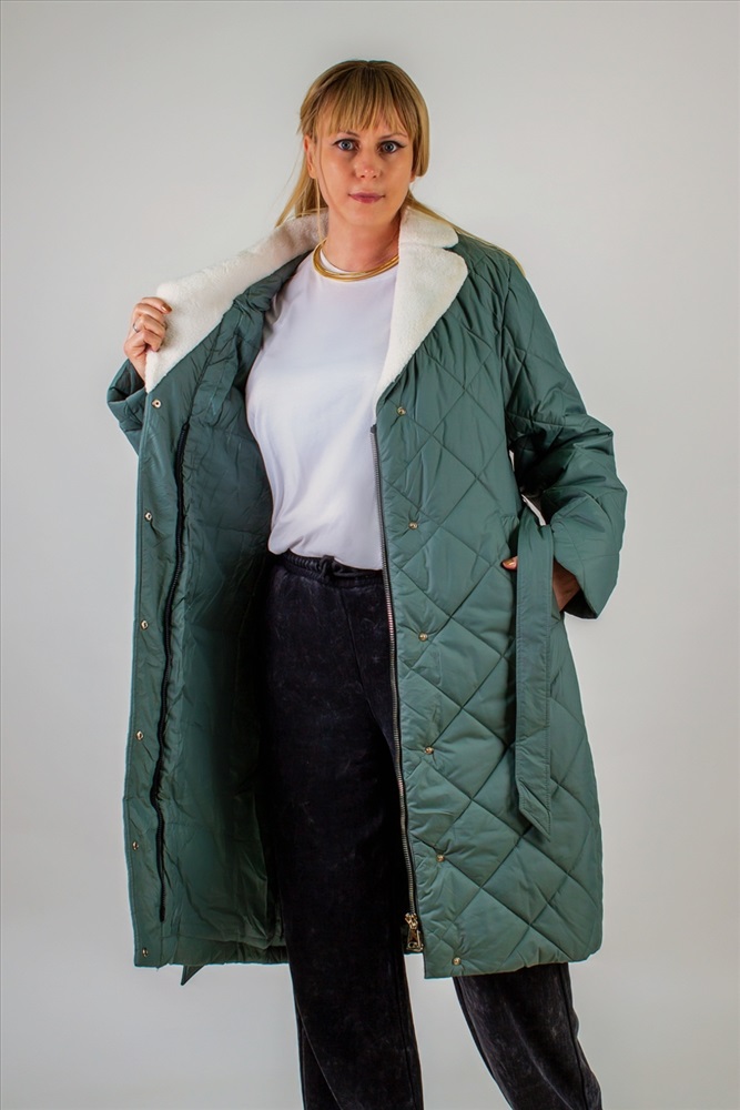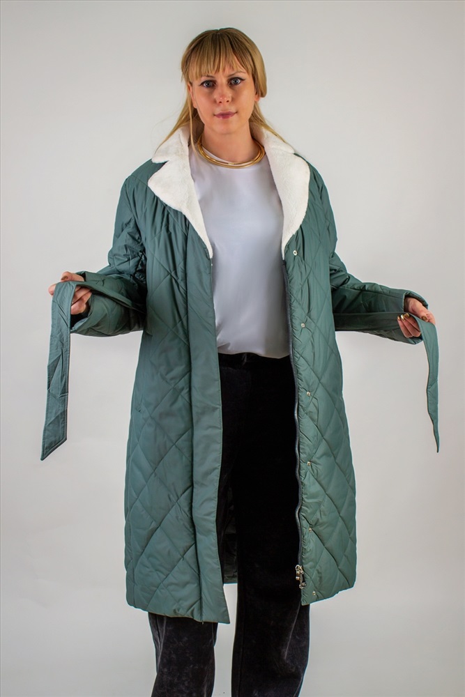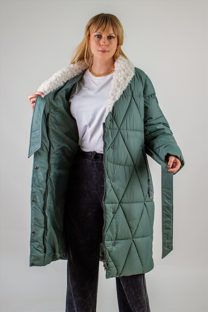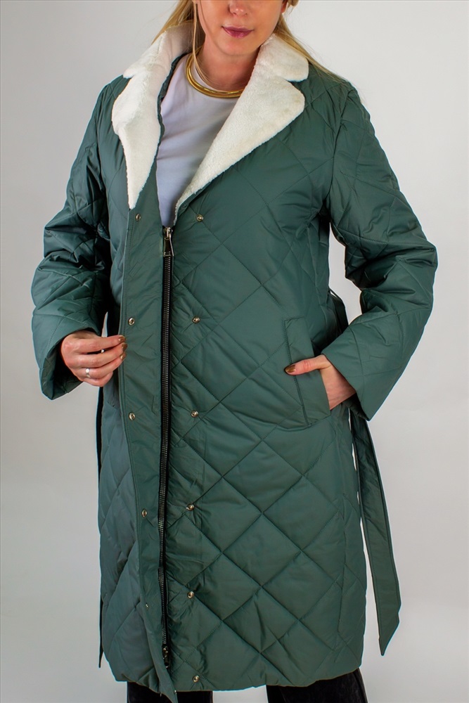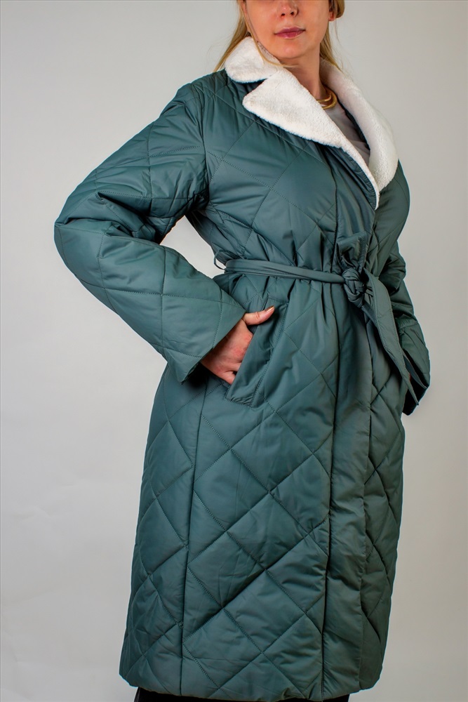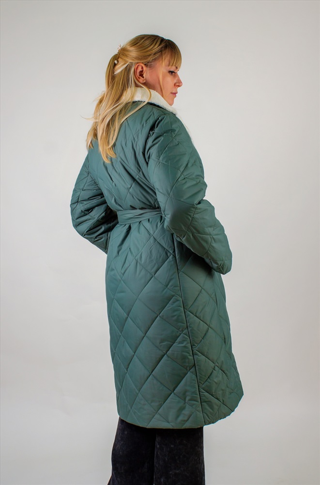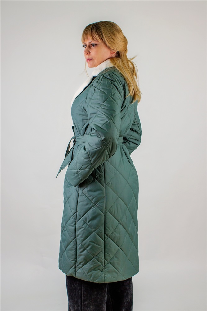 Стеганое пальто с меховой отделкой арт. 23153 10 фото
