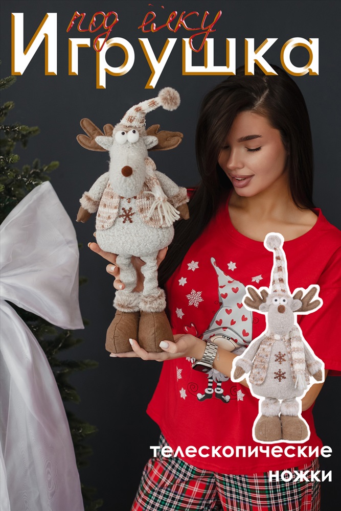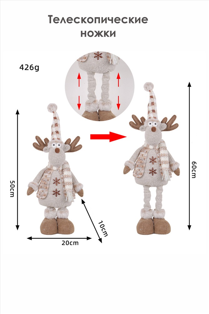 Игрушка новогодняя с выдвижными ногами Олень колпак бежевый 4 фото