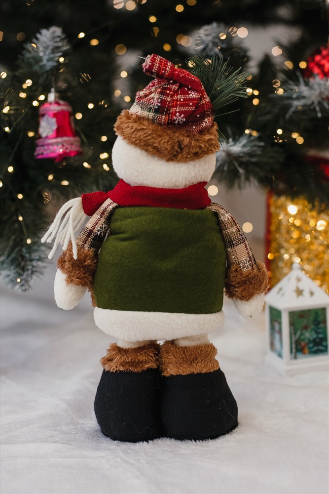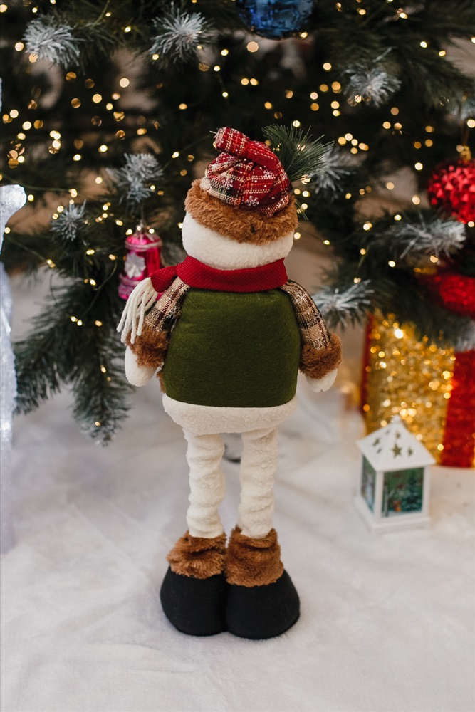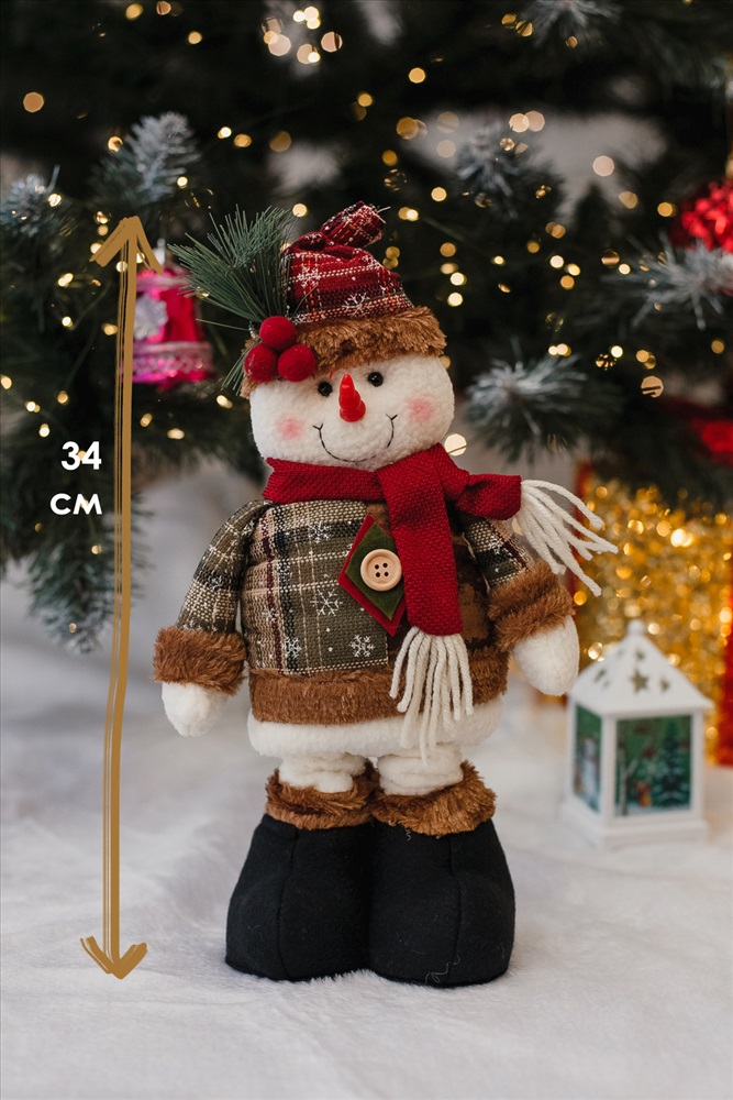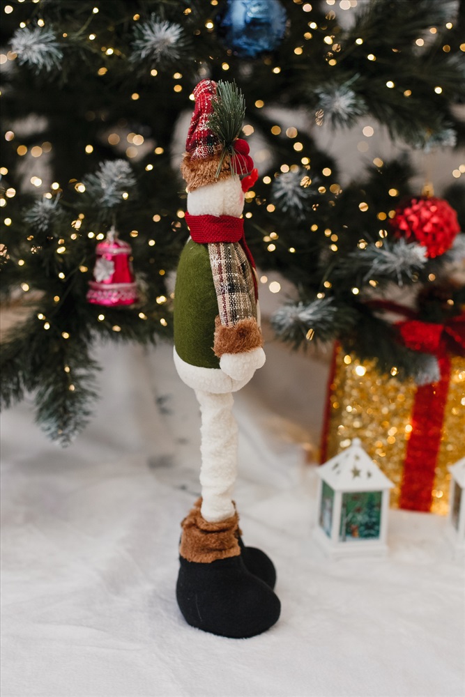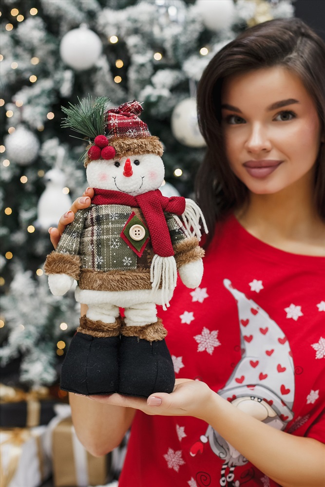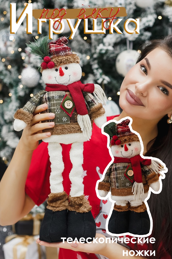 Игрушка новогодняя с выдвижными ногами Снеговик коричневое платье 8 фото