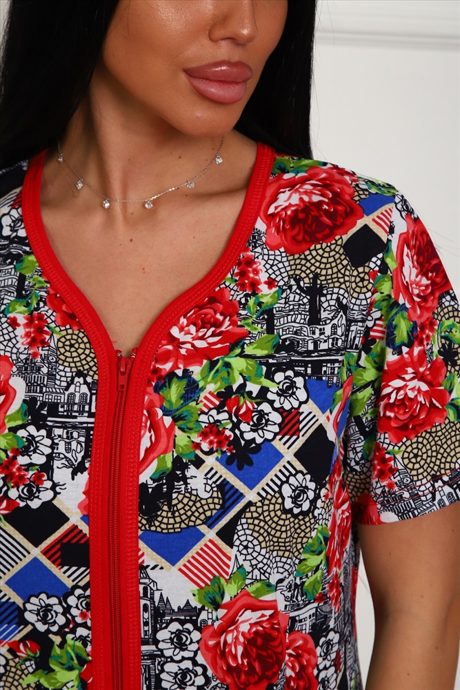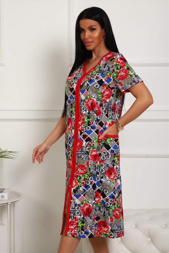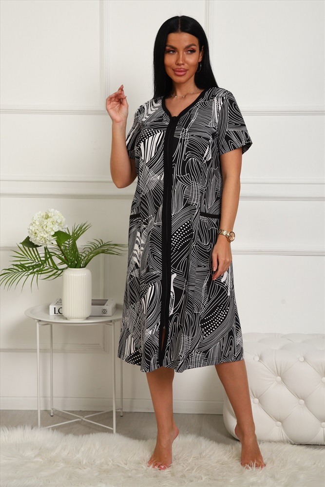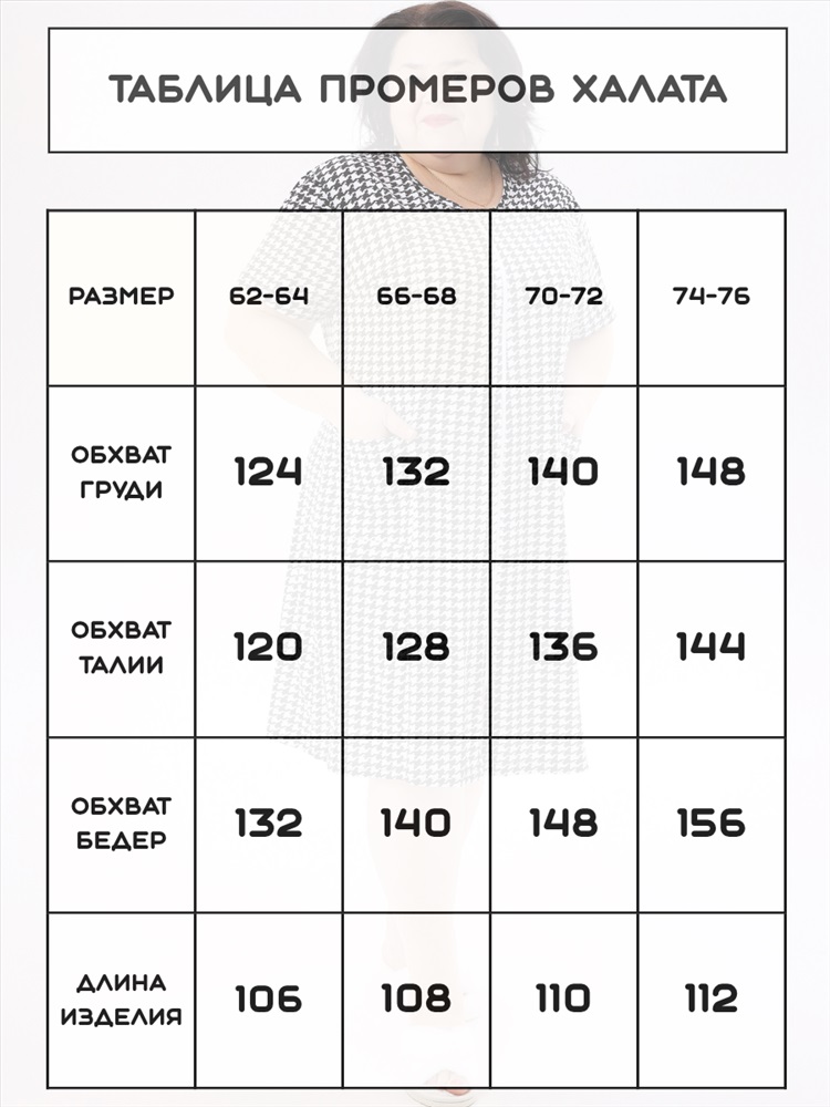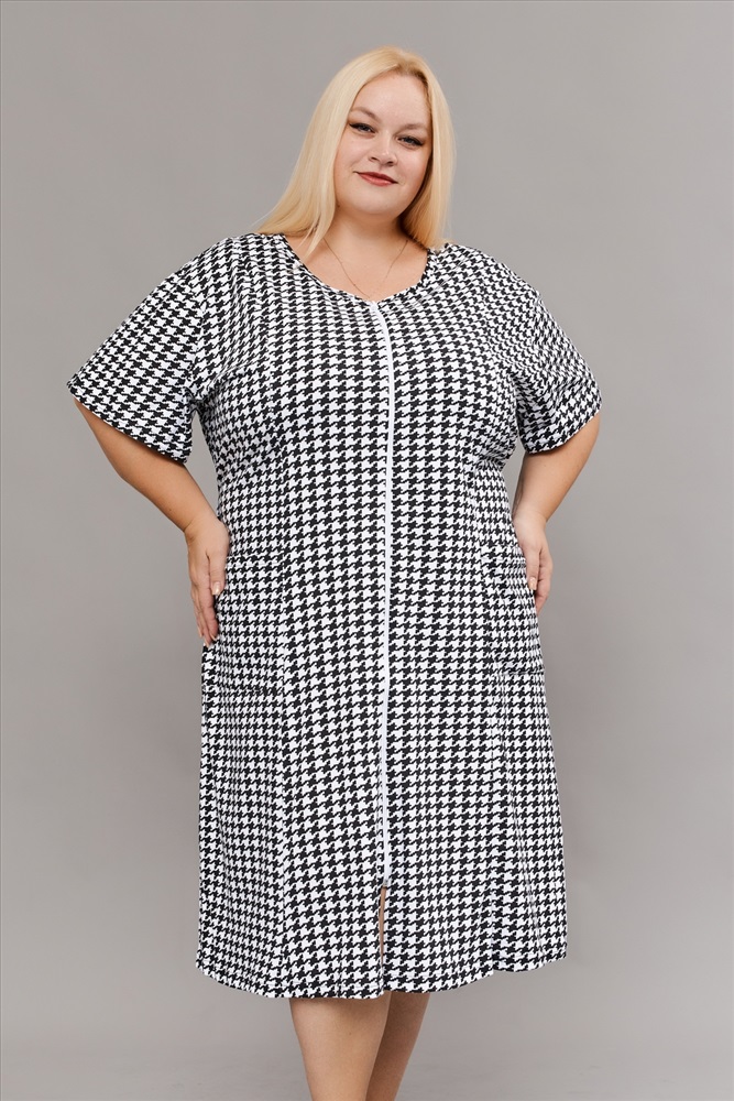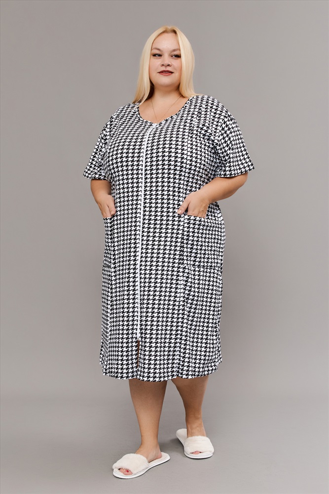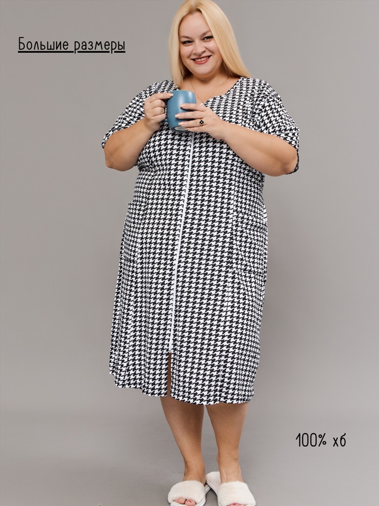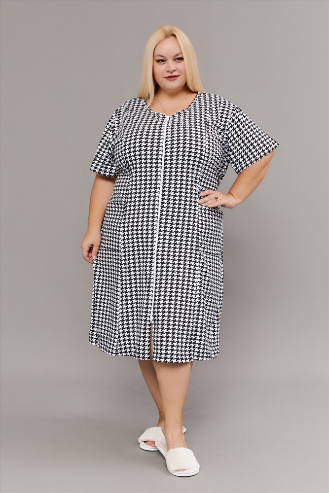 Халат домашний на молнии больших размеров Х-01 гусиная лапка 10 фото