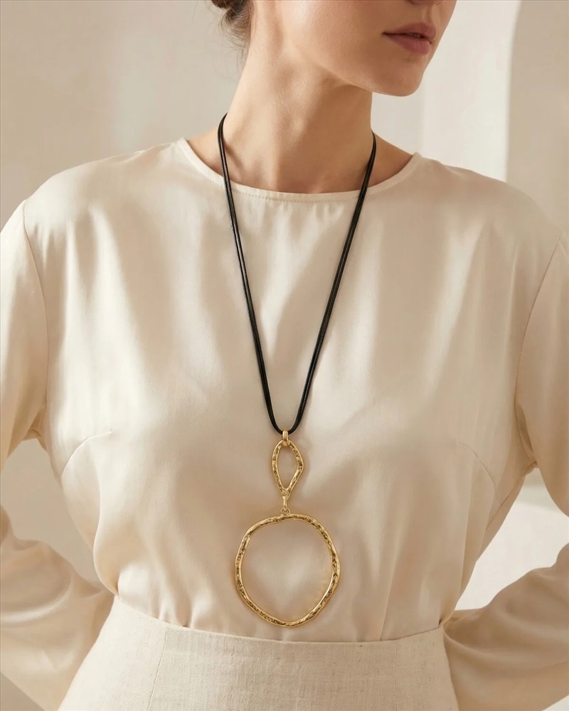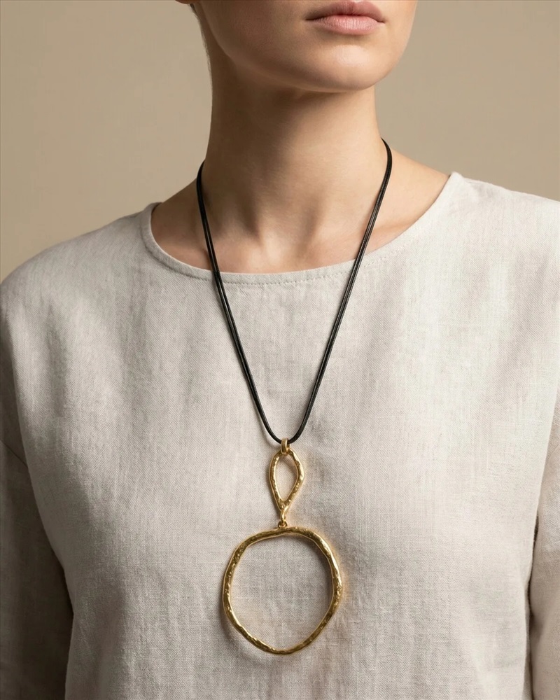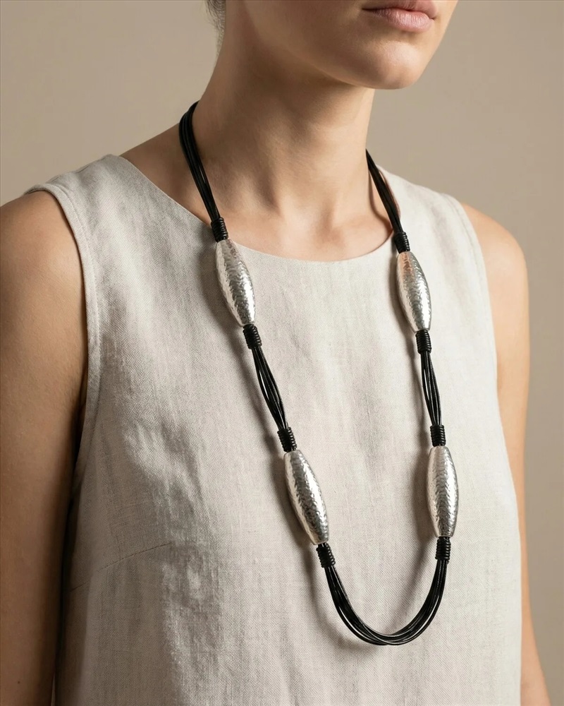 Длинное колье с металлическими элементами 2 фото
