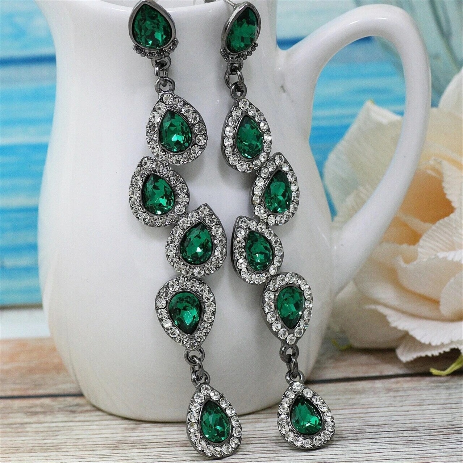 Вечерние серьги с чешскими стразами 3 фото