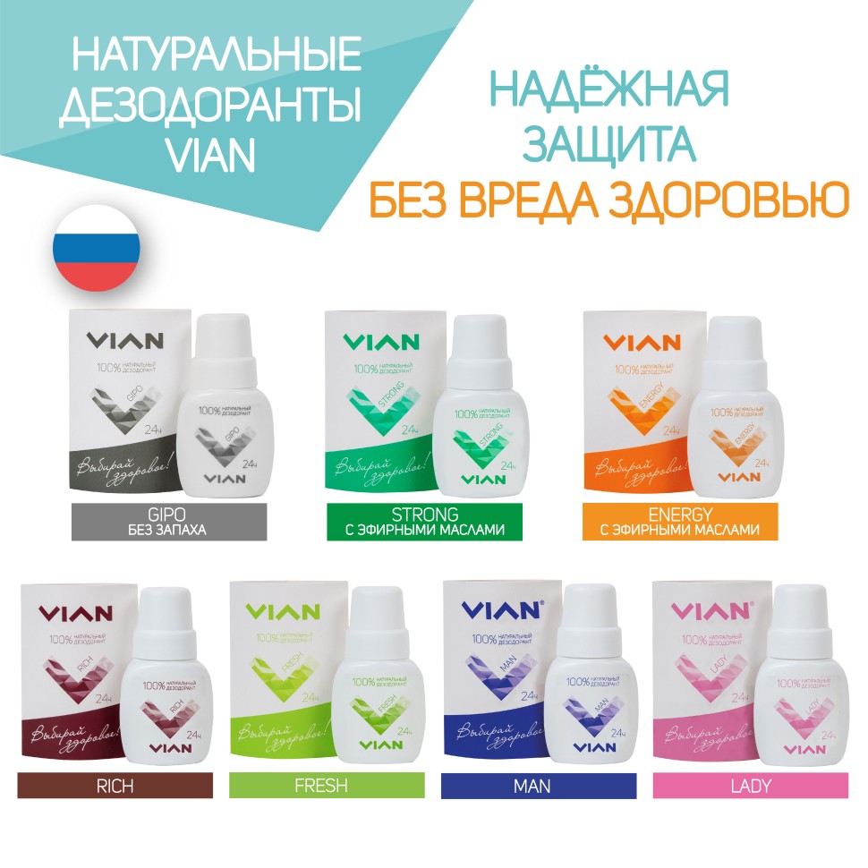 Российский бренд VIAN производит натуральные товары для личной гигиены и уборки, которые действительно работают. Среди них — высококонцентрированные зубные пасты, квасцовые дезодоранты, экологичные порошки для стирки, антисептики для рук, средства для посудомоечных машин и моющие средства для посуды. Продукция производится из качественного сырья, перед выпуском в продажу проходит испытания на эффективность и безопасность. Качество подтверждено Сертификатом соответствия. В составе отсутствуют компоненты животного происхождения, тестирование на животных не проводится.