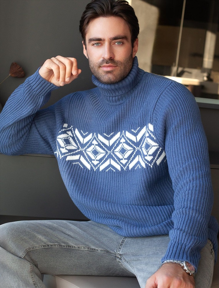 Джемпер жаккардовой вязки из пряжи двух оттенков 7 фото