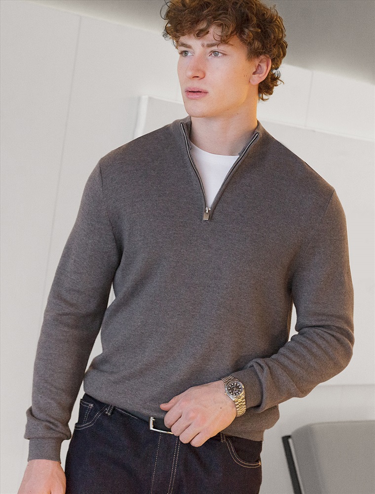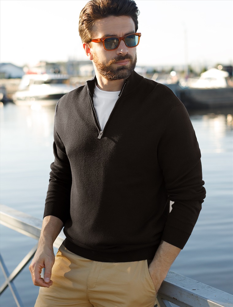 Свитер фактурной крупной вязки с металлической молнией 6 фото