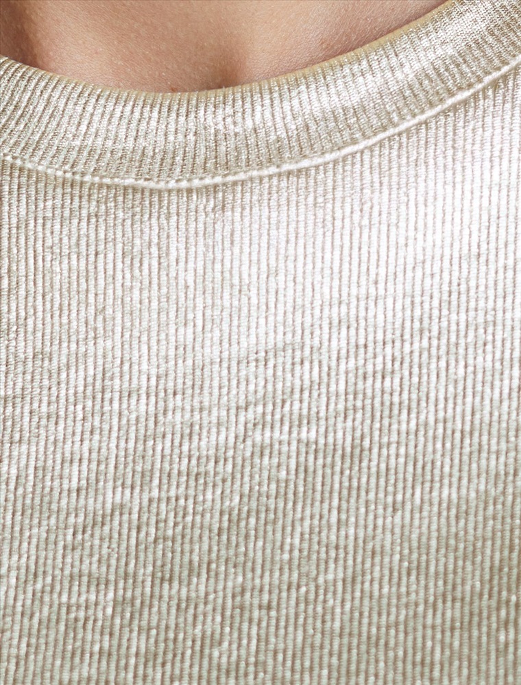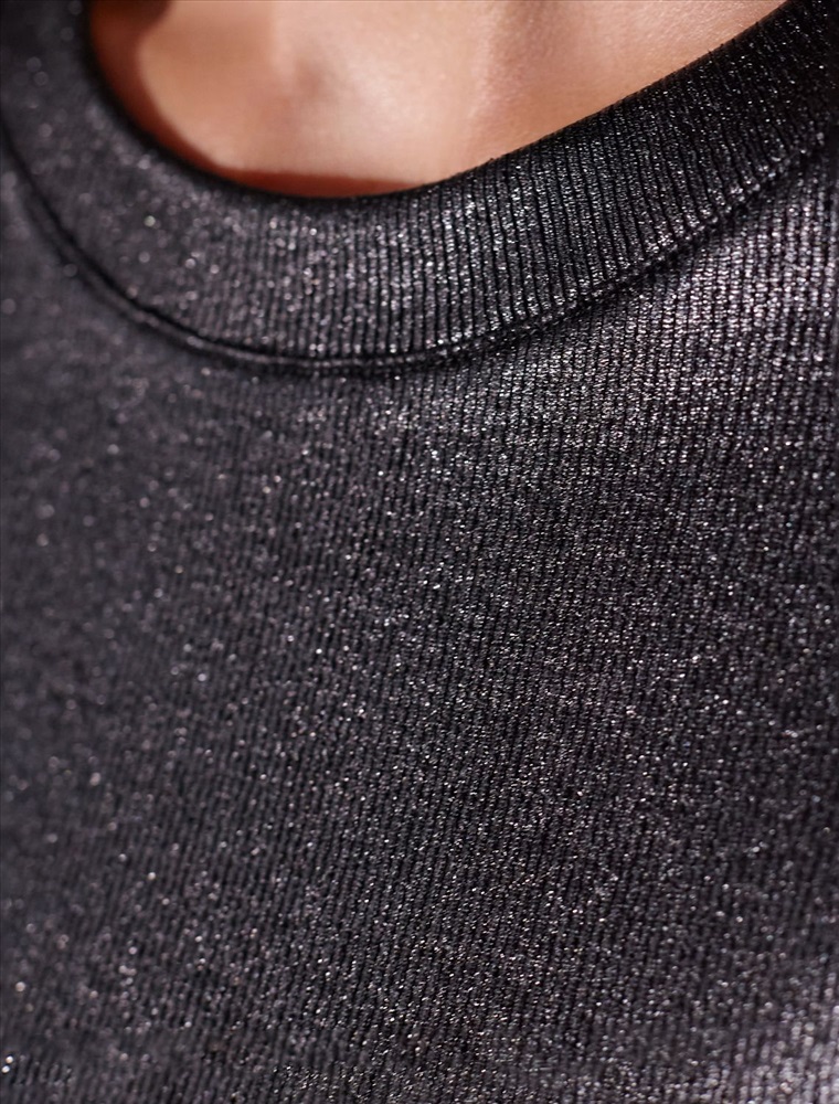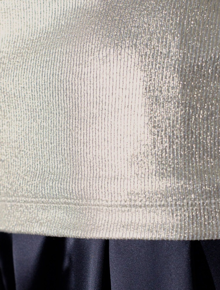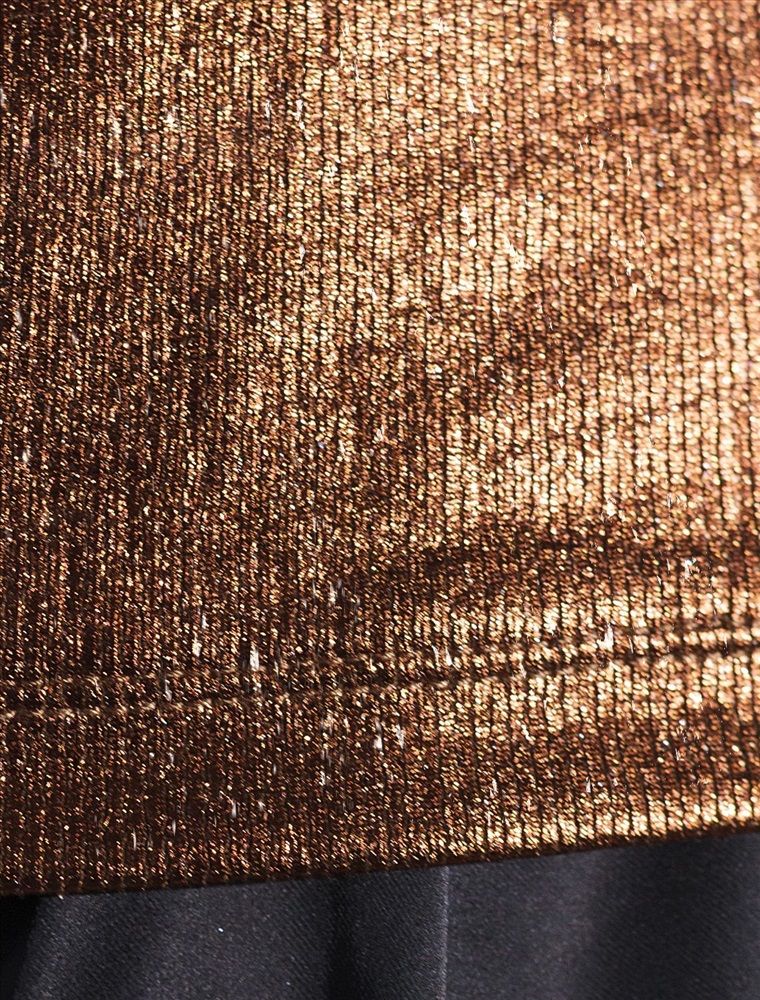 Топ с закрытым декольте из хлопка с эластаном в рубчик с матовым покрытием металлик 5 фото
