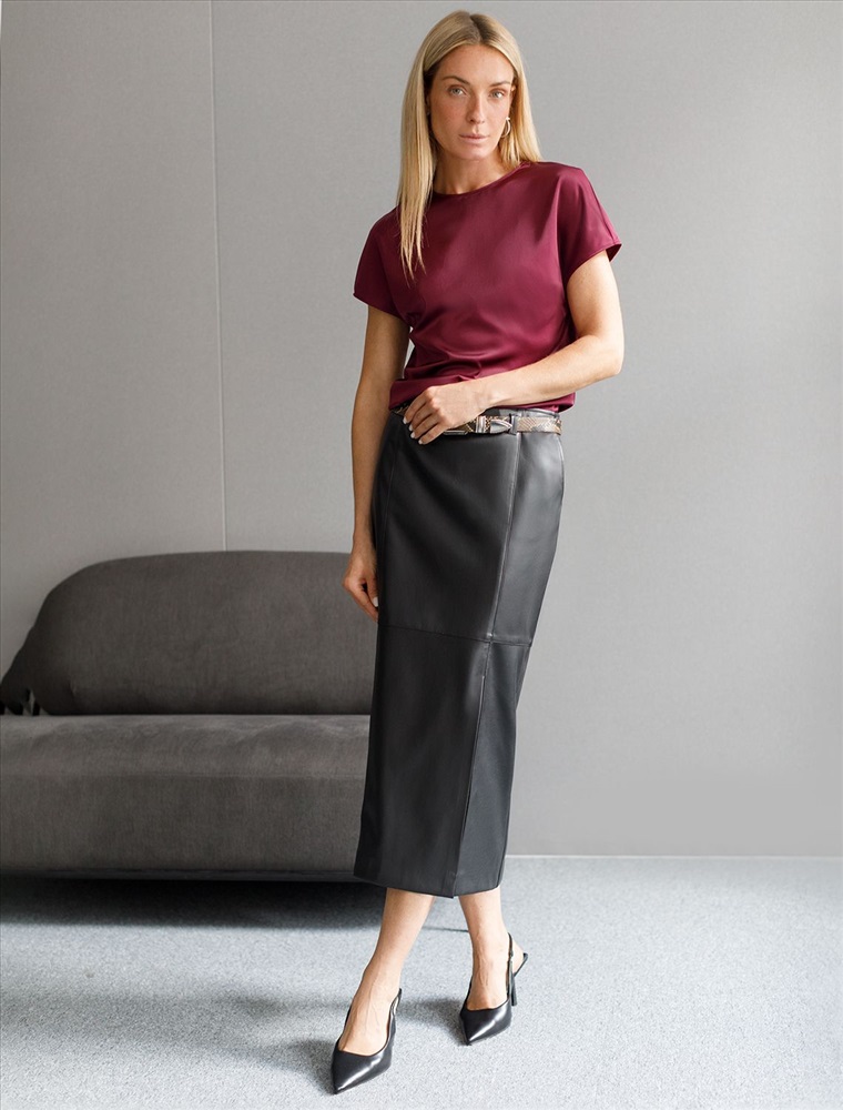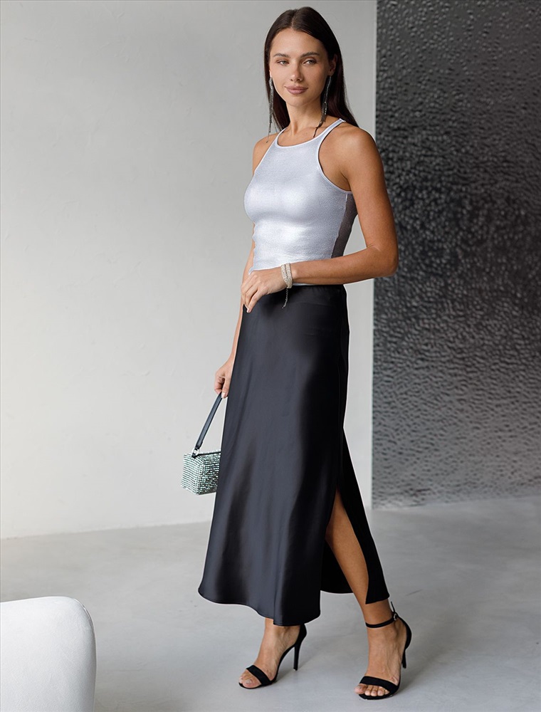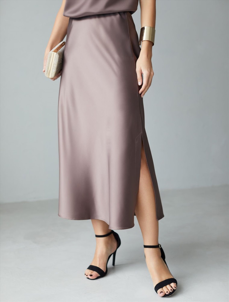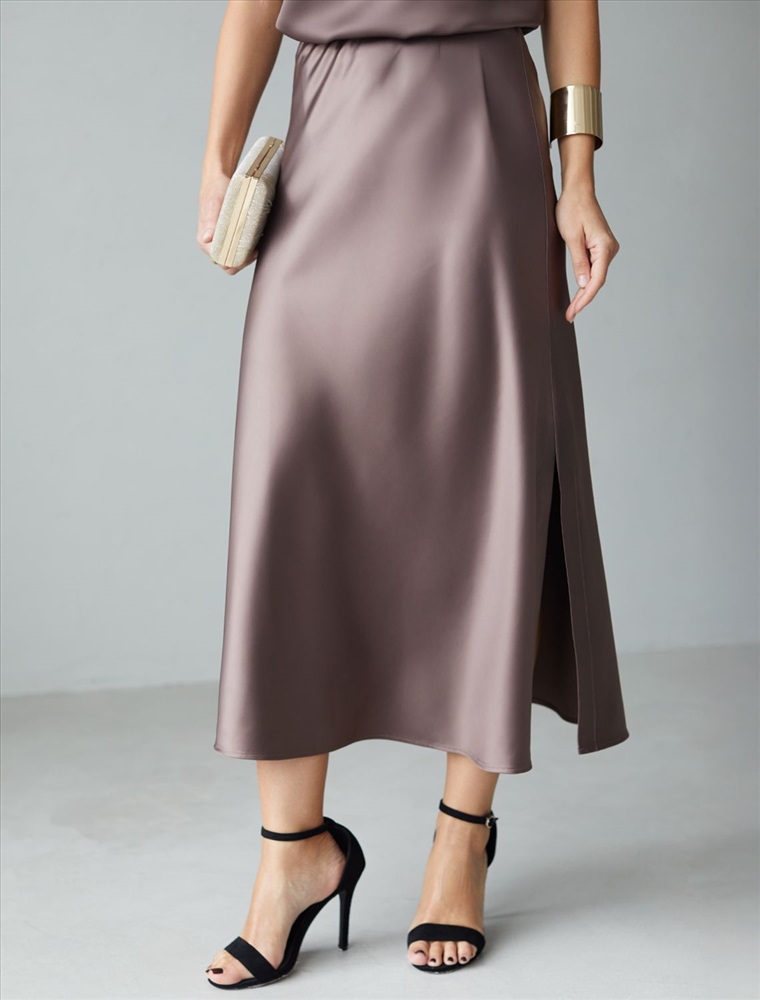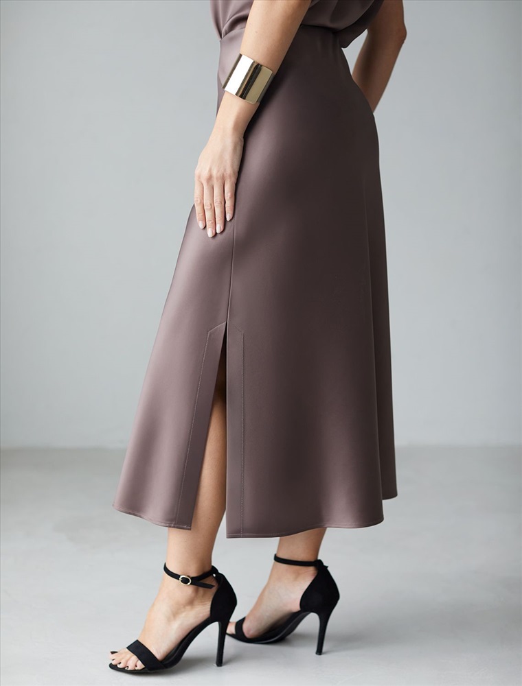 Юбка миди с разрезом из струящегося плотного сатина 5 фото