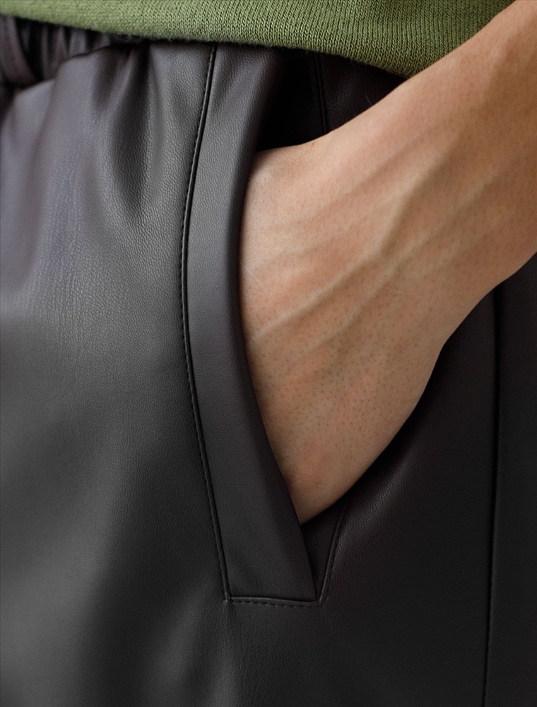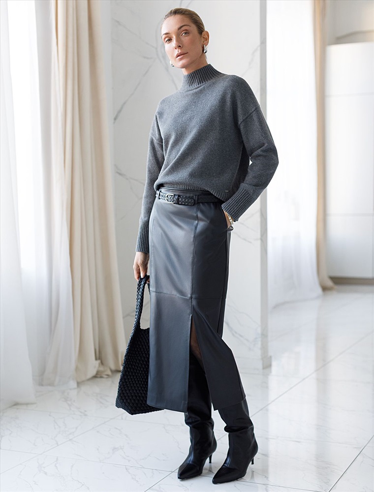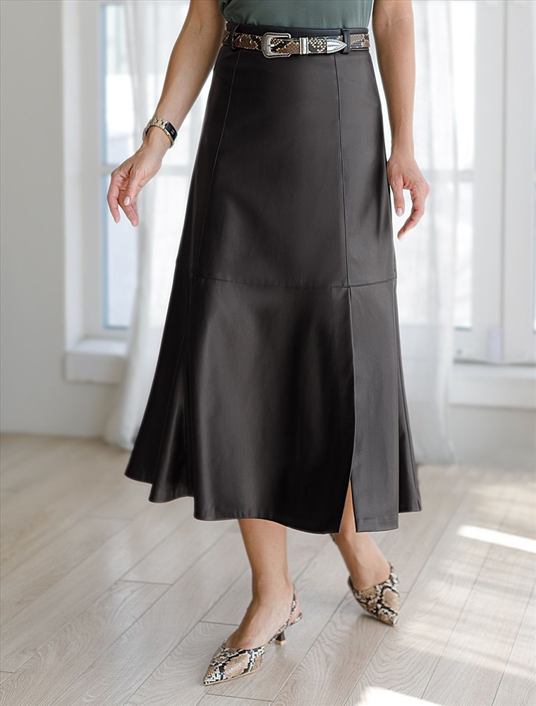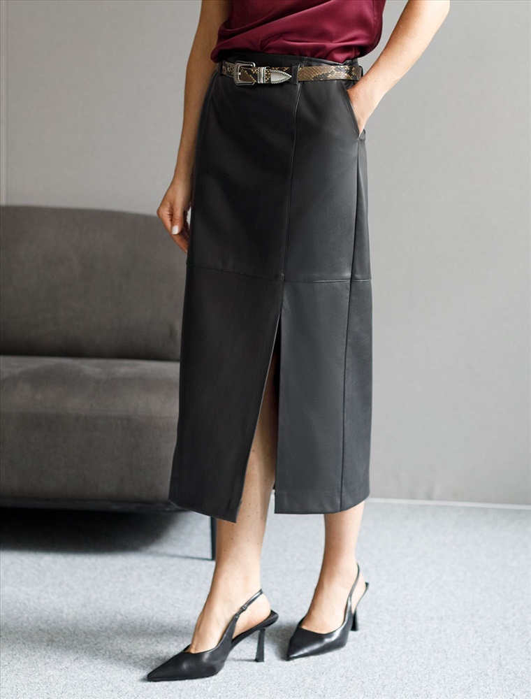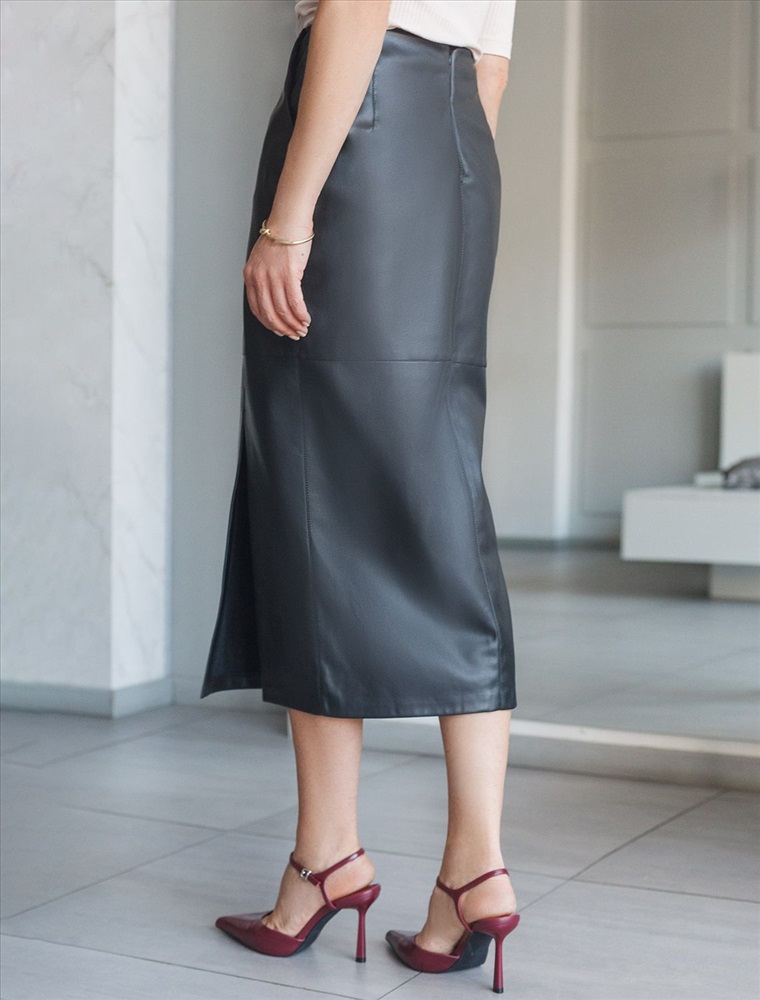 Юбка миди с разрезом из струящегося плотного сатина 5 фото