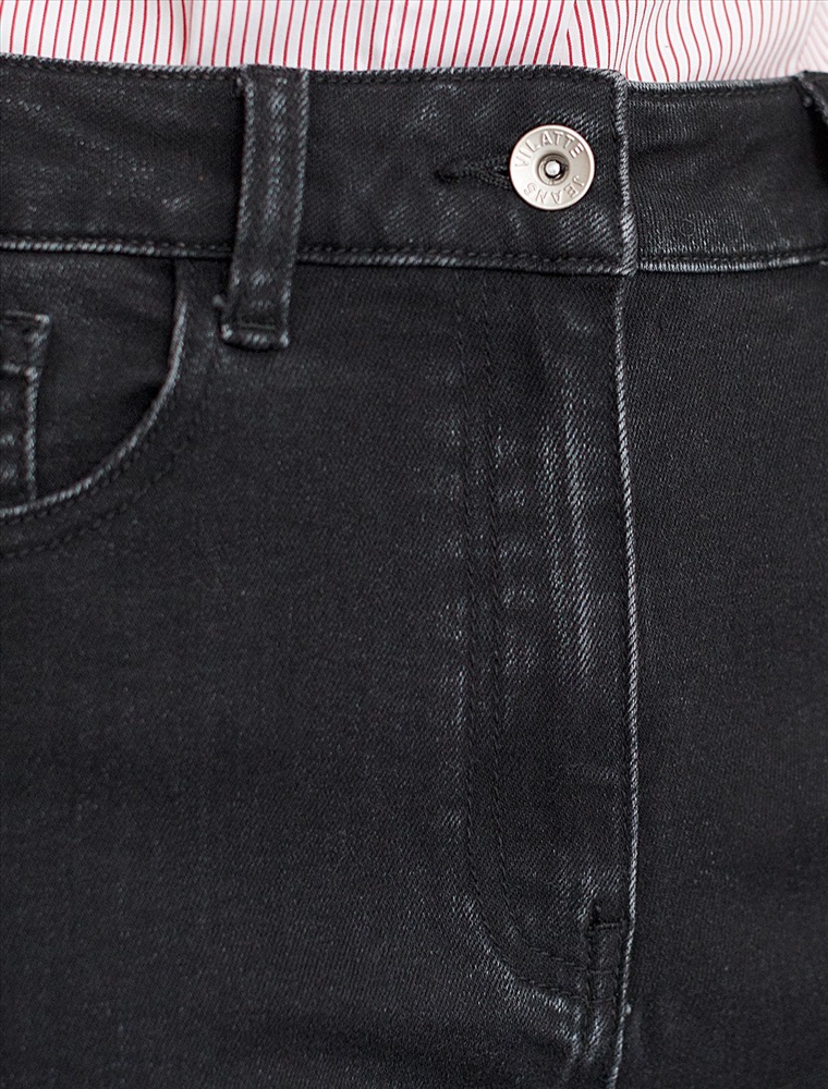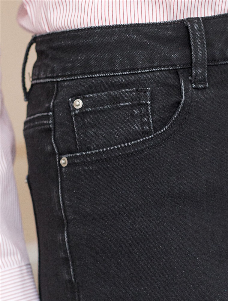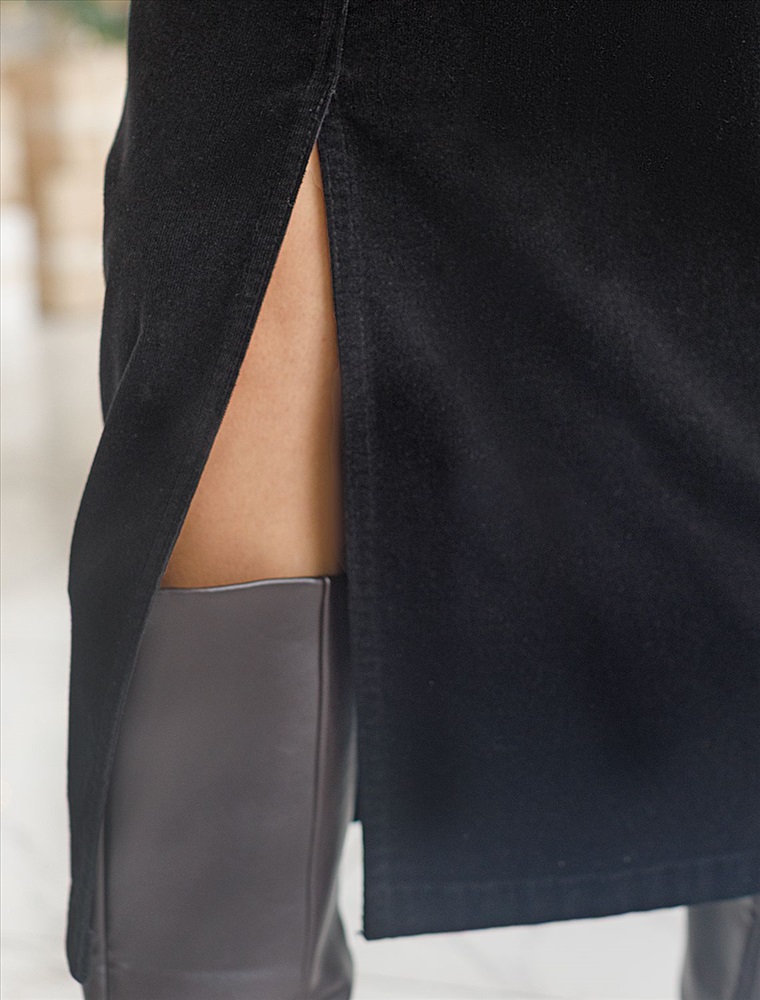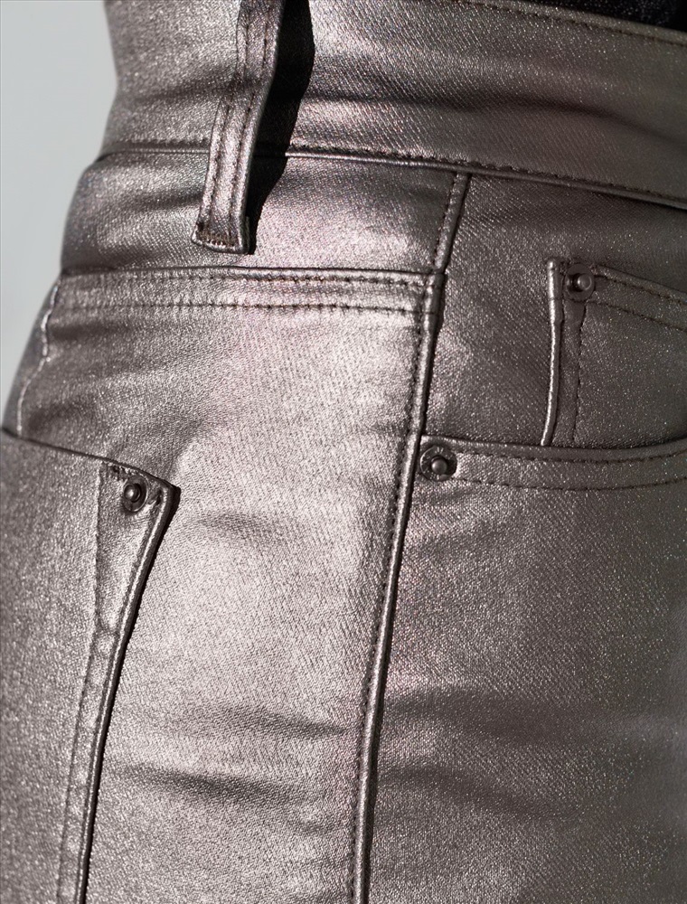 Юбка карандаш металлик средней длины с разрезом из эластичного денима 6 фото