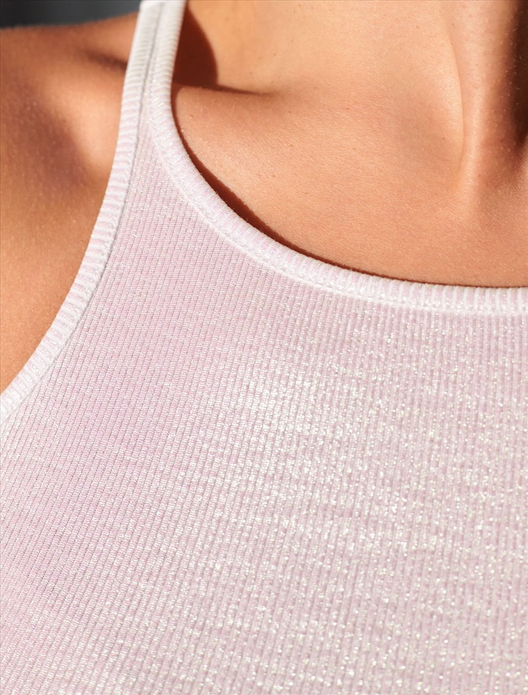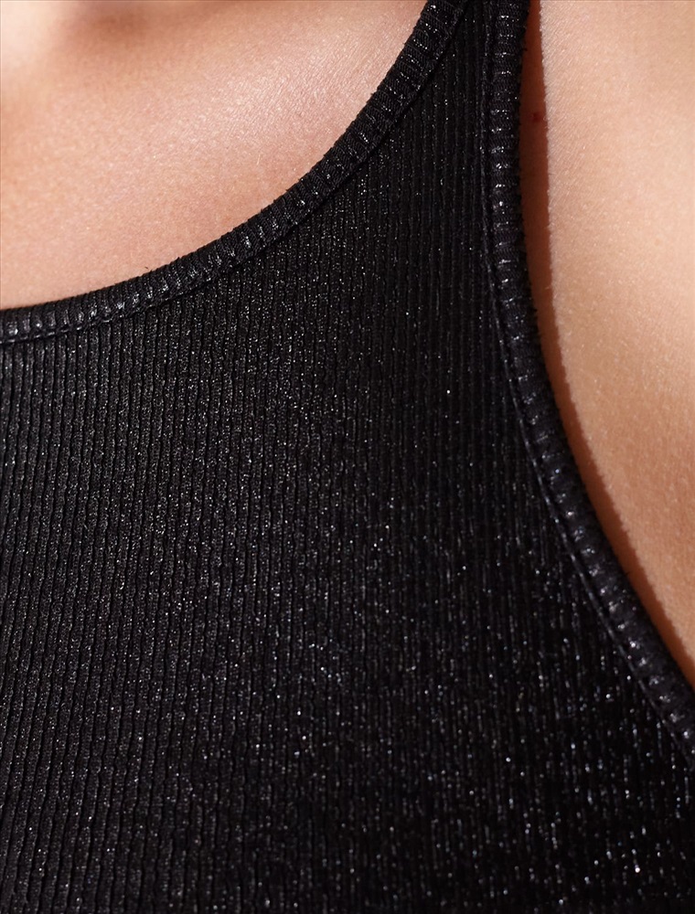 Топ в рубчик с широкими лямками с матовым покрытием металлик из хлопка с эластаном 8 фото