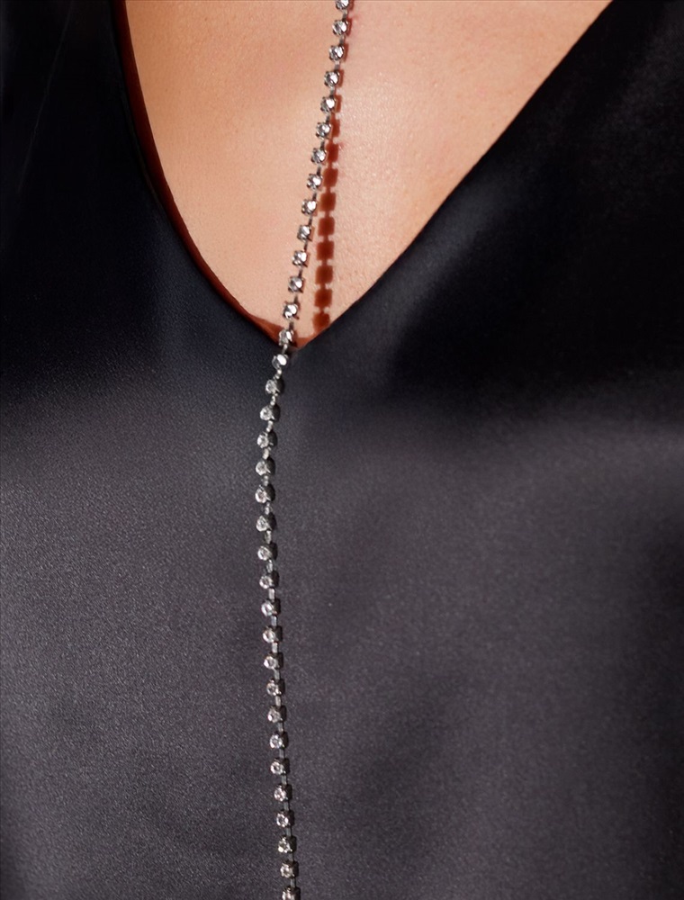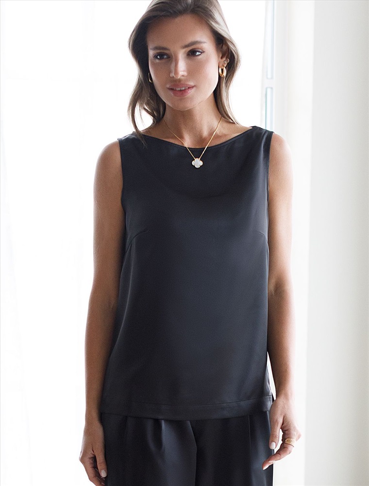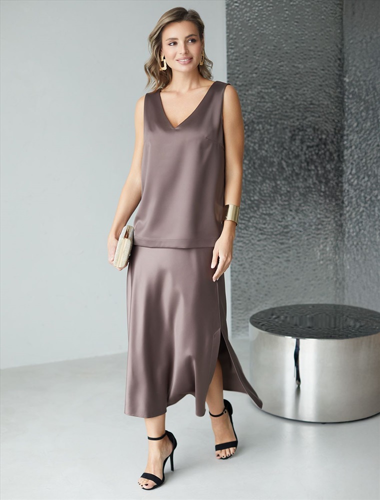 Элегантный топ с V вырезом из струящегося сатина 7 фото