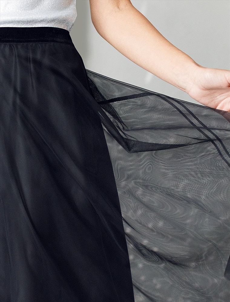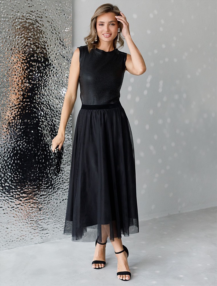 Юбка миди вечерняя на резинке из матового сатина с мягкой сеткой 7 фото