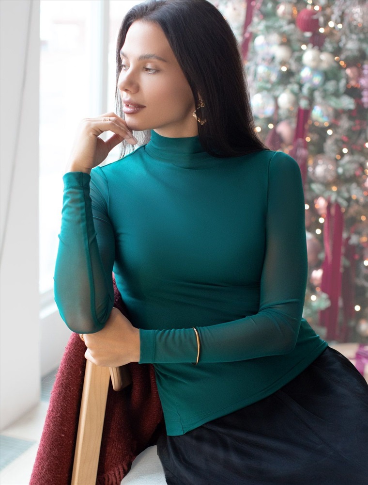 Топ с закрытым декольте из хлопка с эластаном в рубчик с матовым покрытием металлик 9 фото