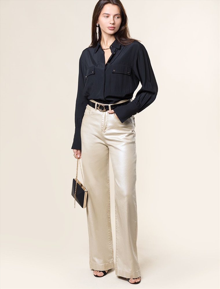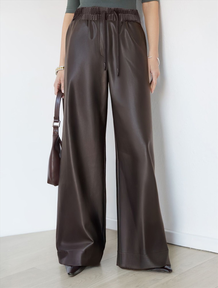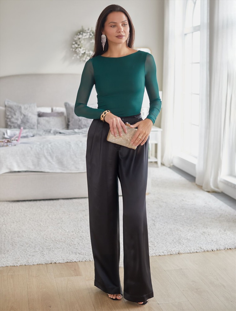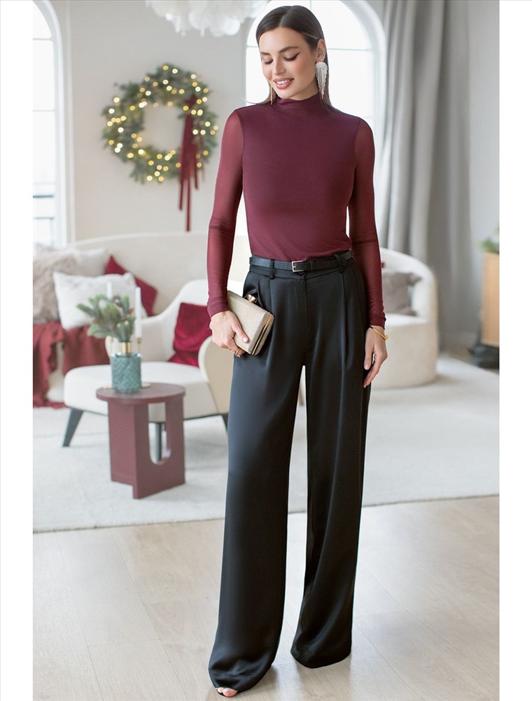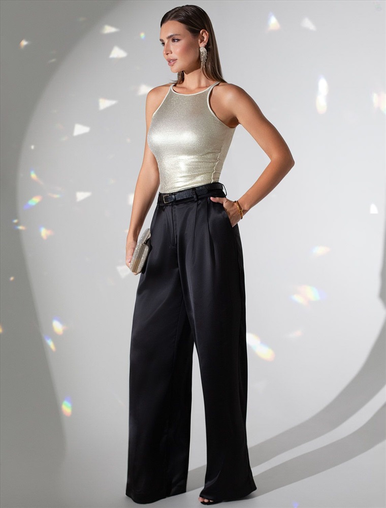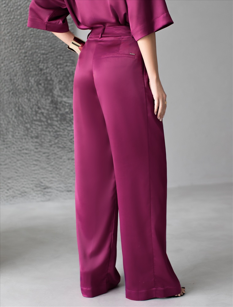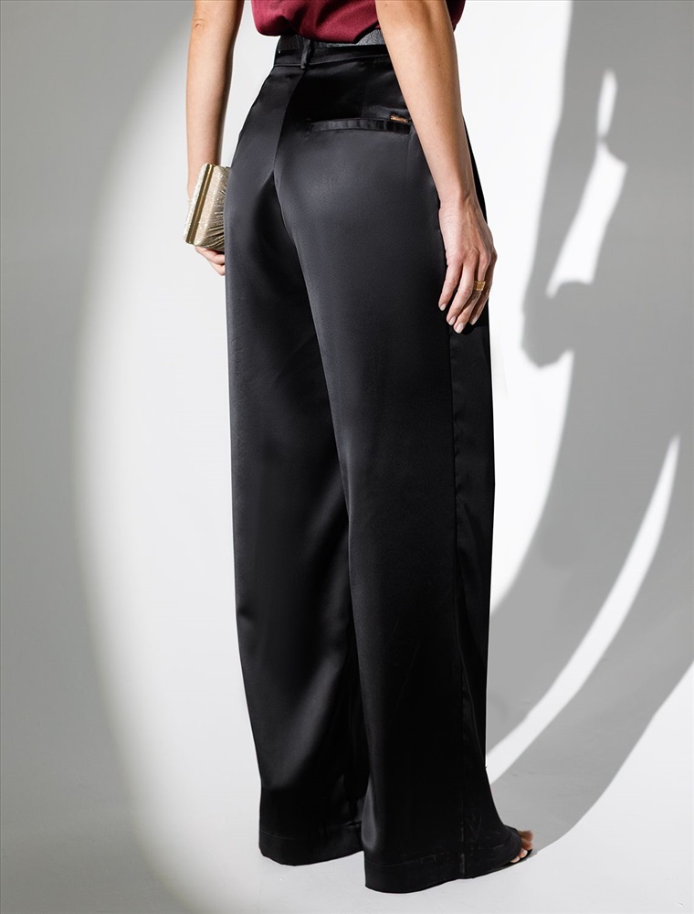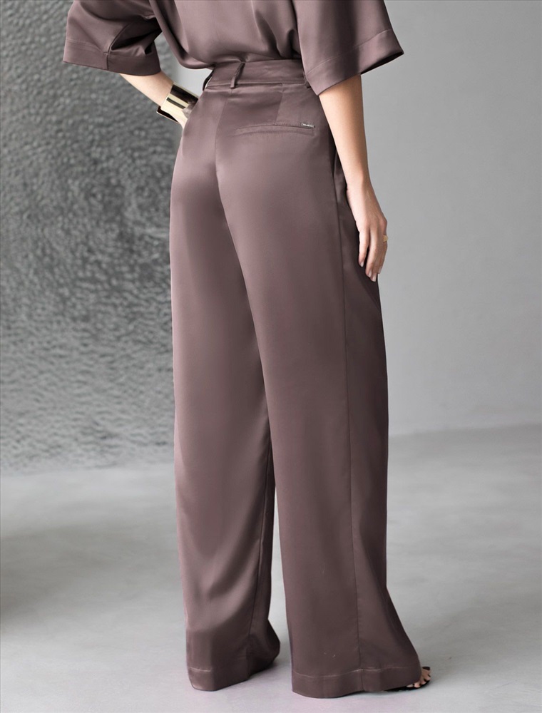 Брюки палаццо широкие из струящегося сатина 5 фото