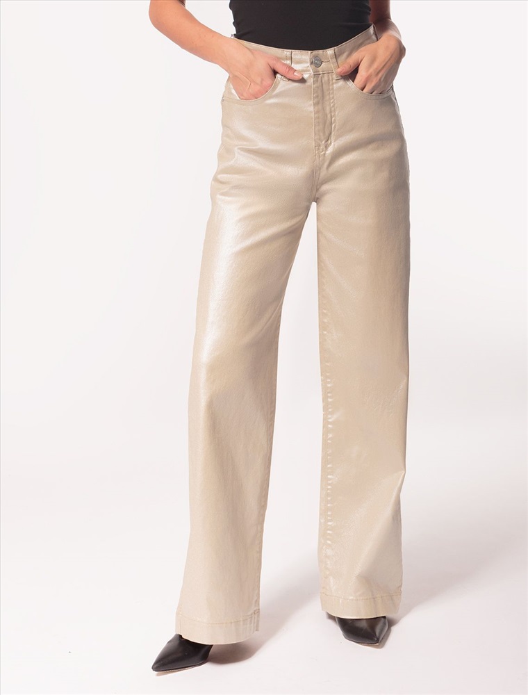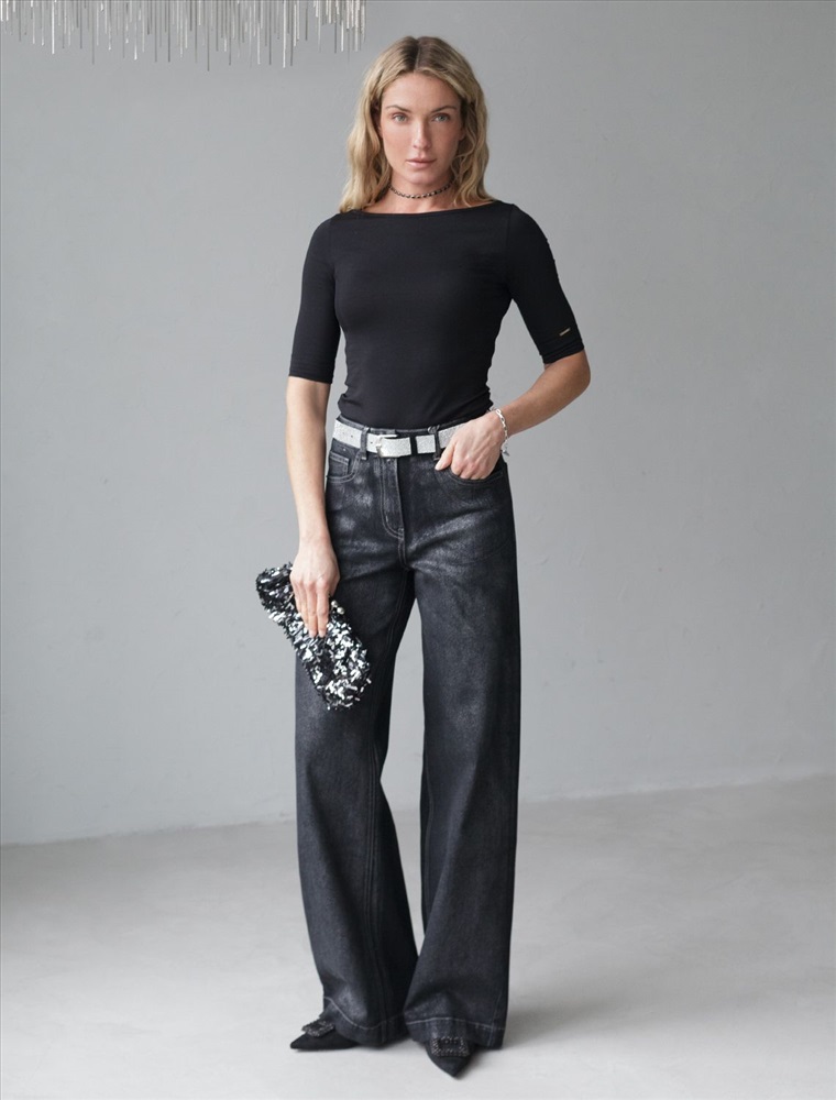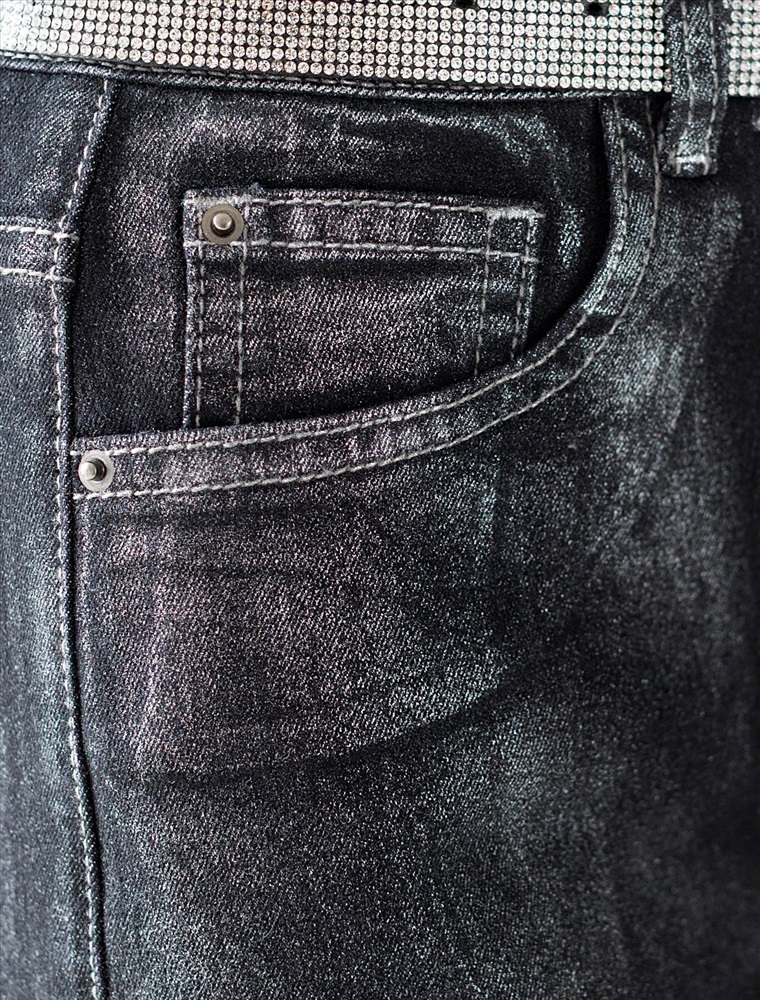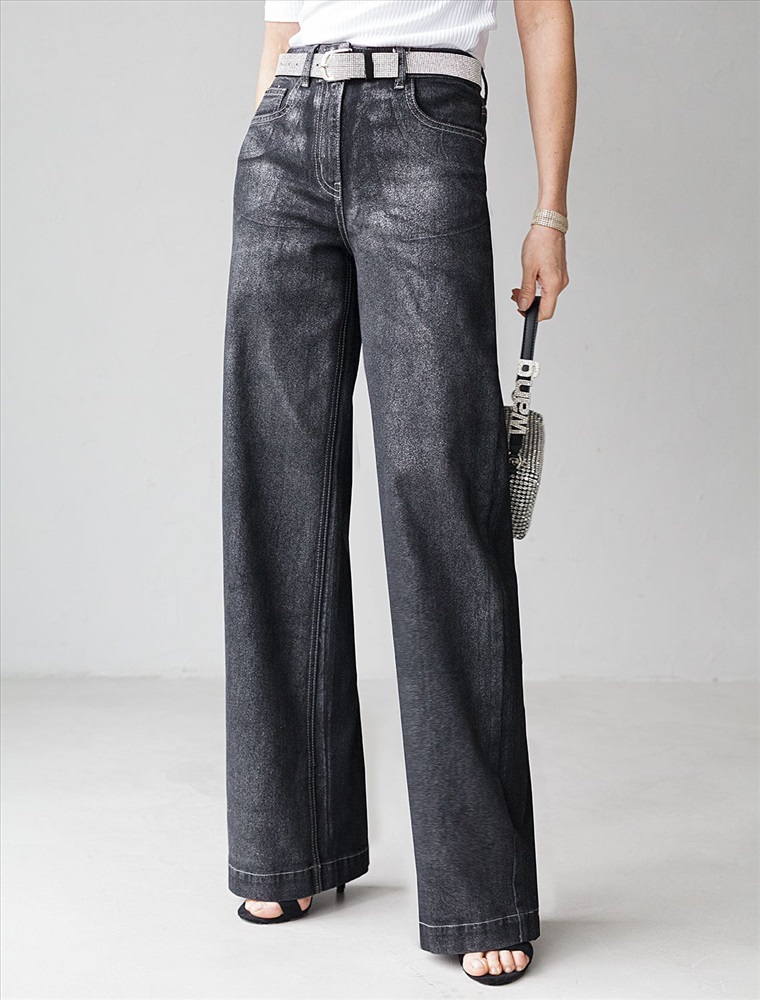 Джинсы трубы металлик прямые из эластичного денима 6 фото