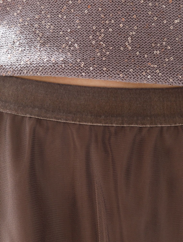 Юбка миди вечерняя на резинке из матового сатина с мягкой сеткой 6 фото