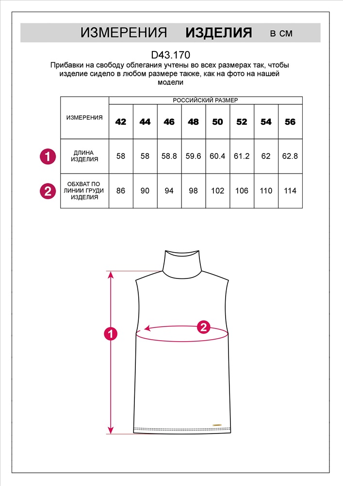 Все наши изделия сшиты на рост 170 см, если ваш рост намного отличается от заявленного, то учитывайте это при выборе моделей. Измерения каждого изделия указаны на сайте в карточках товара среди фотографий. Далее нужно сравнить полученные измерения с величинами в таблице.