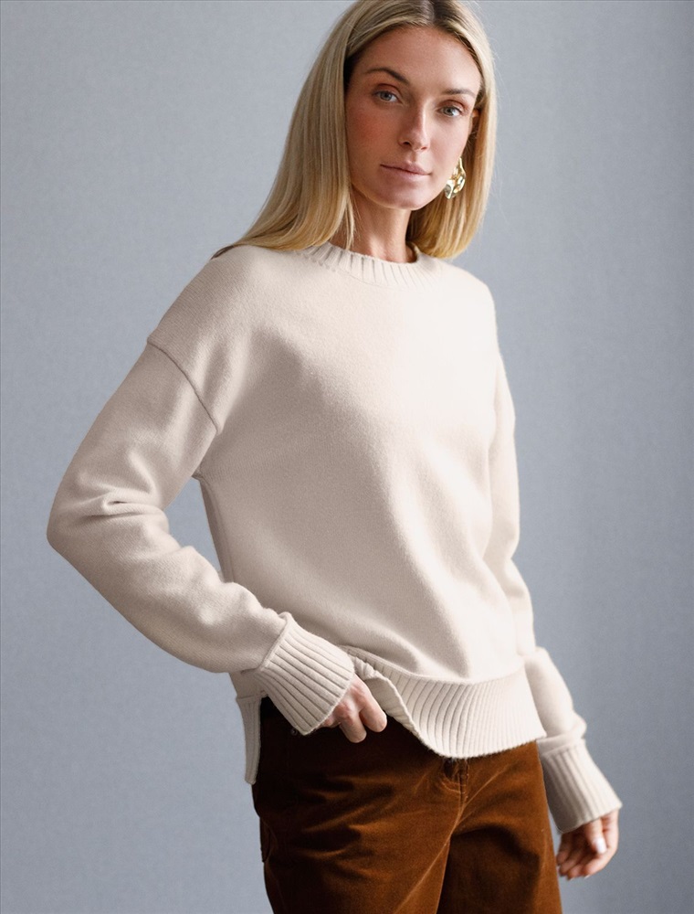 Базовый джемпер из мягкой пряжи с кашемиром с разрезами по бокам 8 фото
