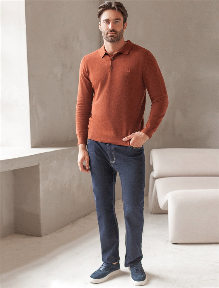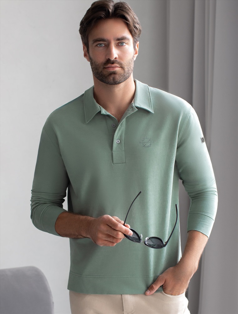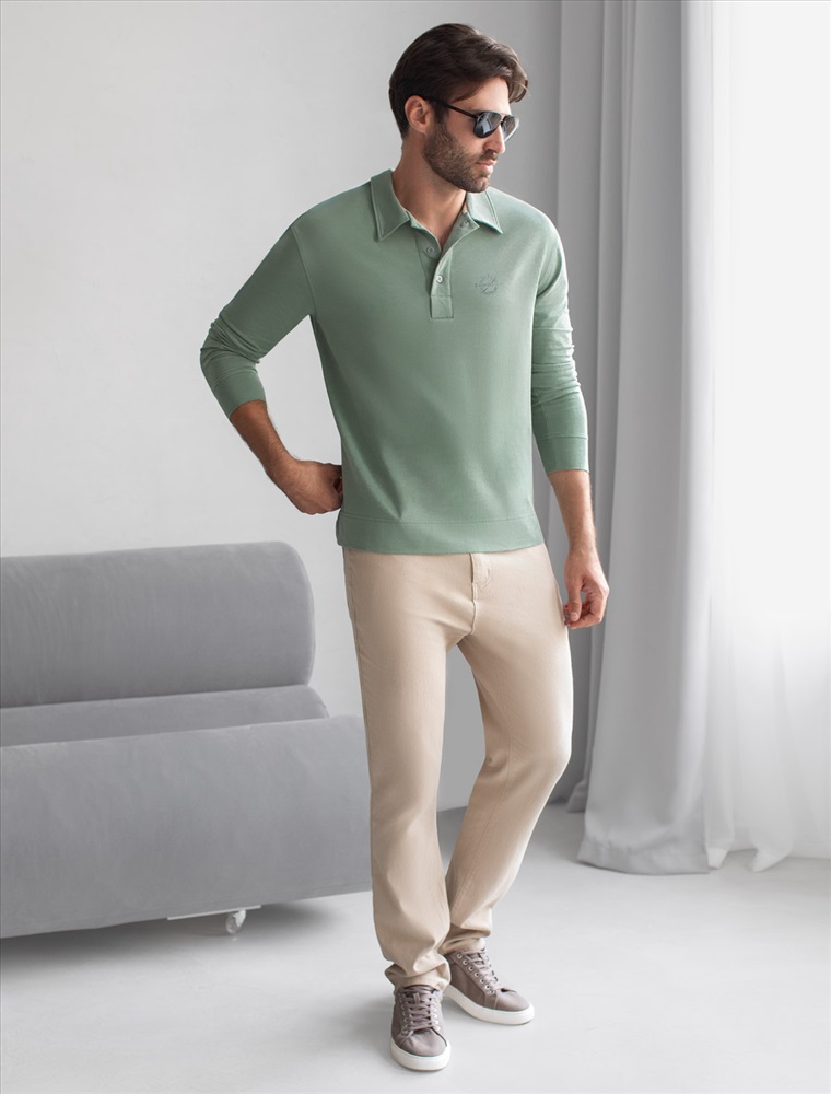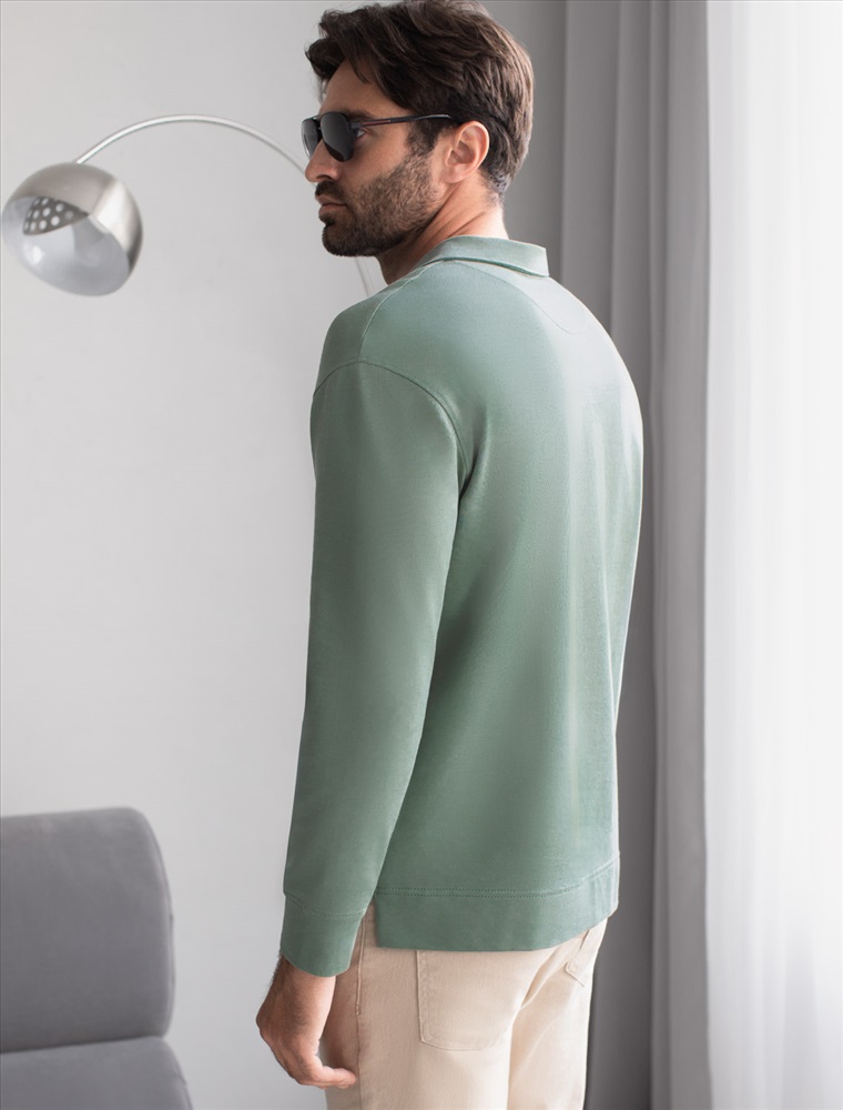 Лонгслив с воротником поло на пуговицах из премиального хлопка с эластаном 7 фото