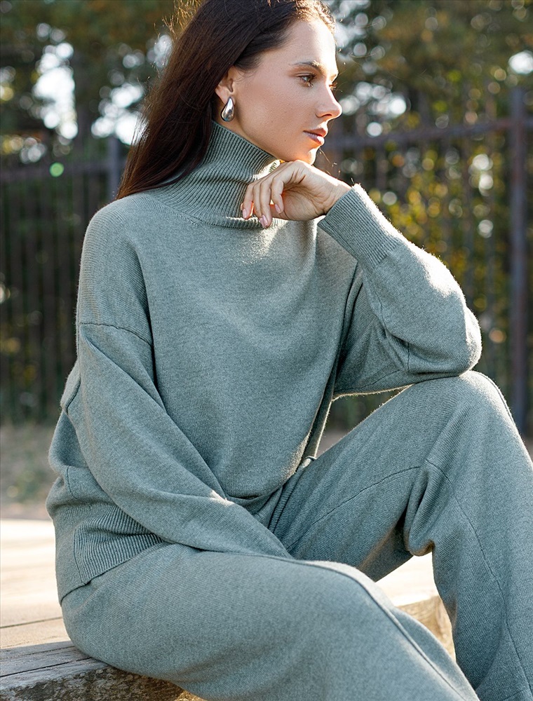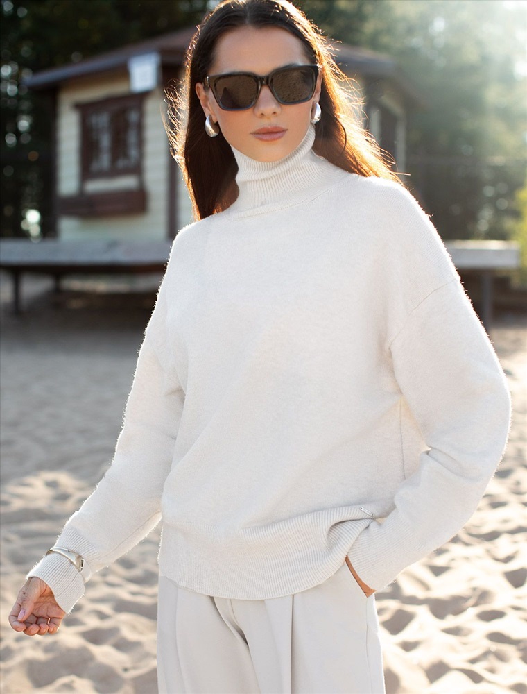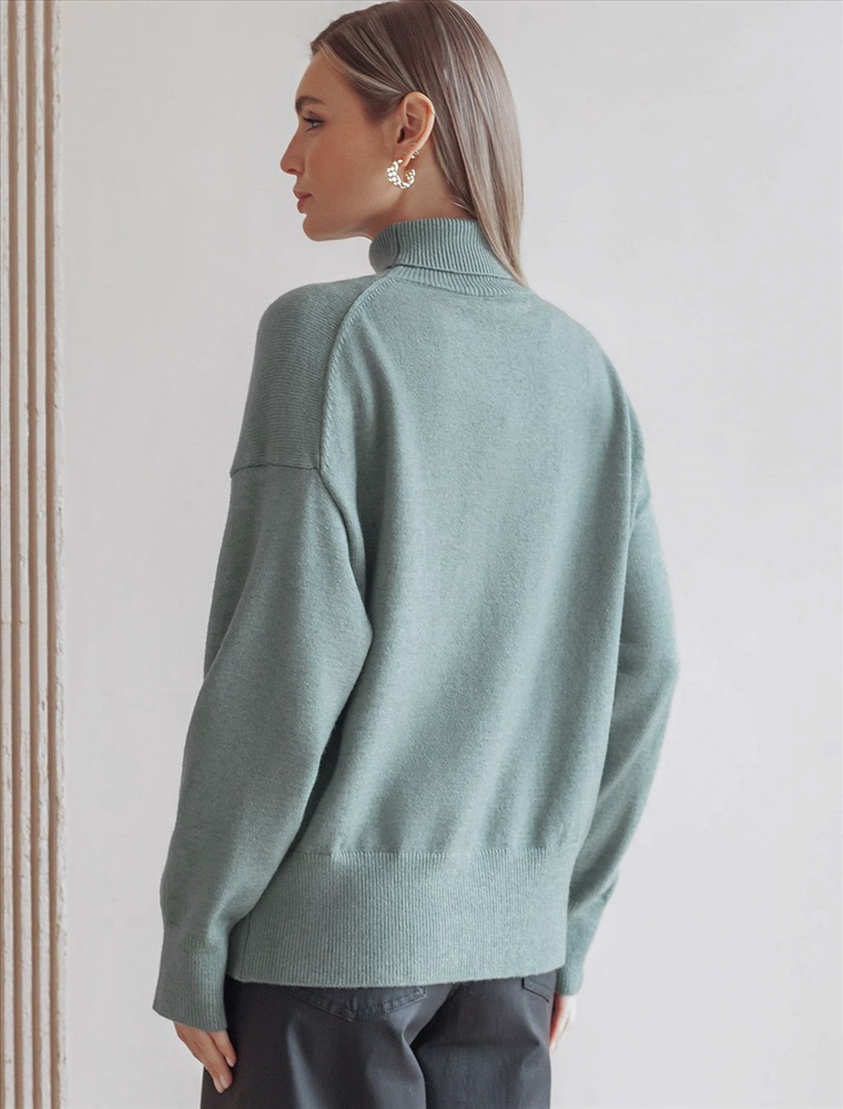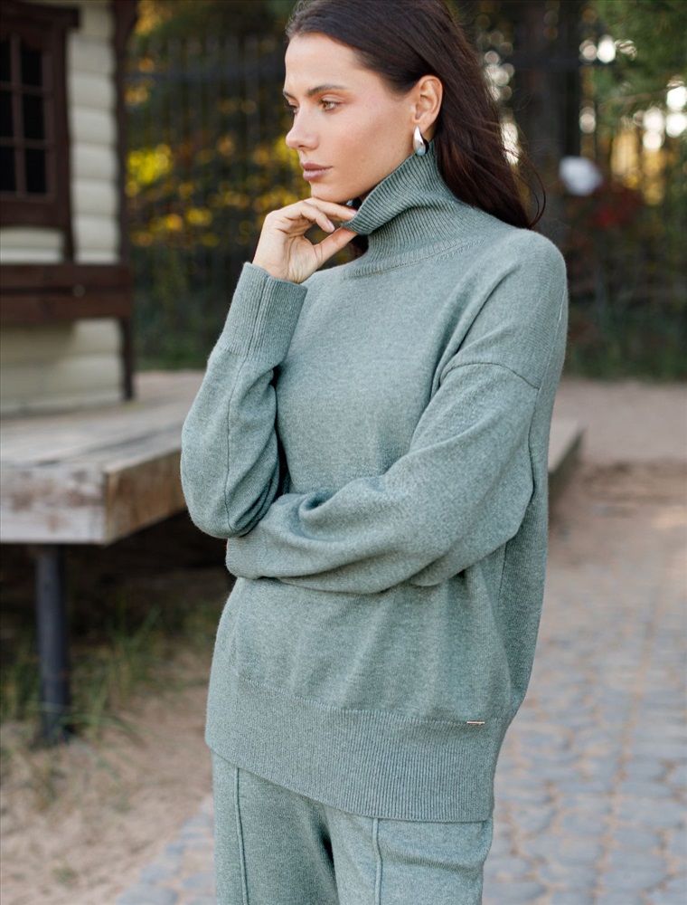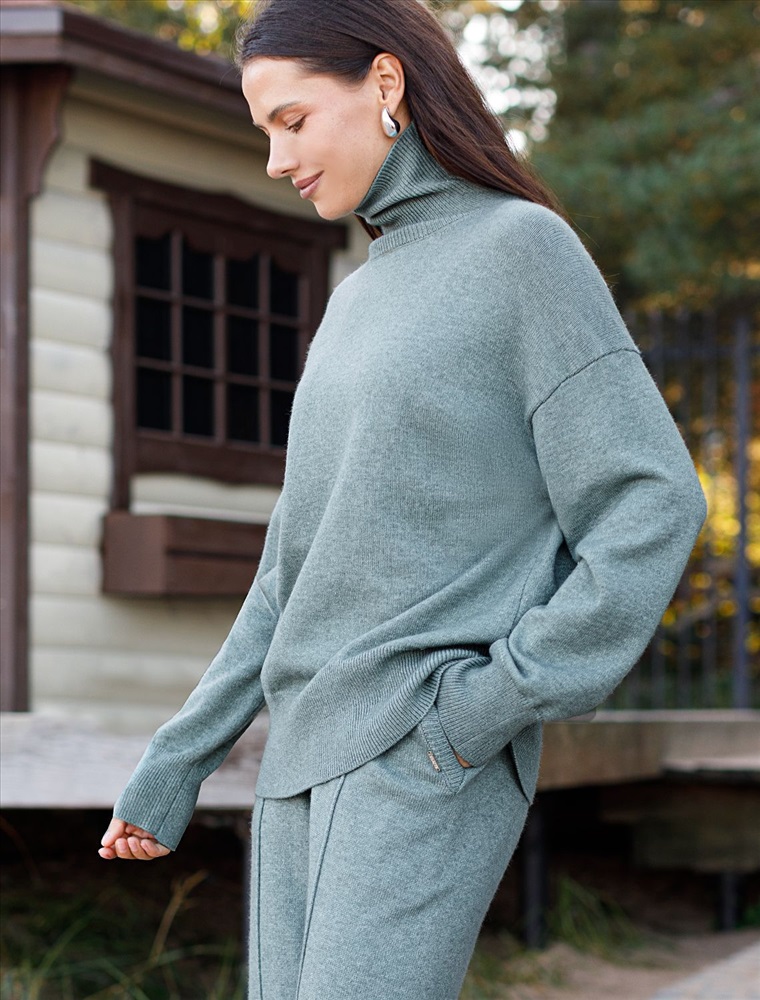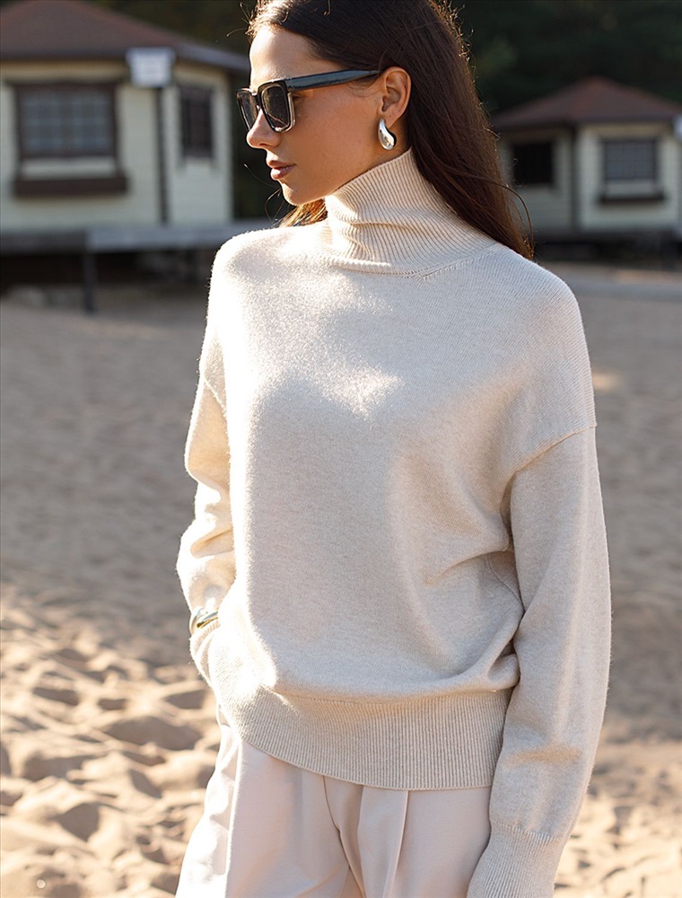 Свободный свитер с высоким воротом из мягкой пряжи с кашемиром 8 фото
