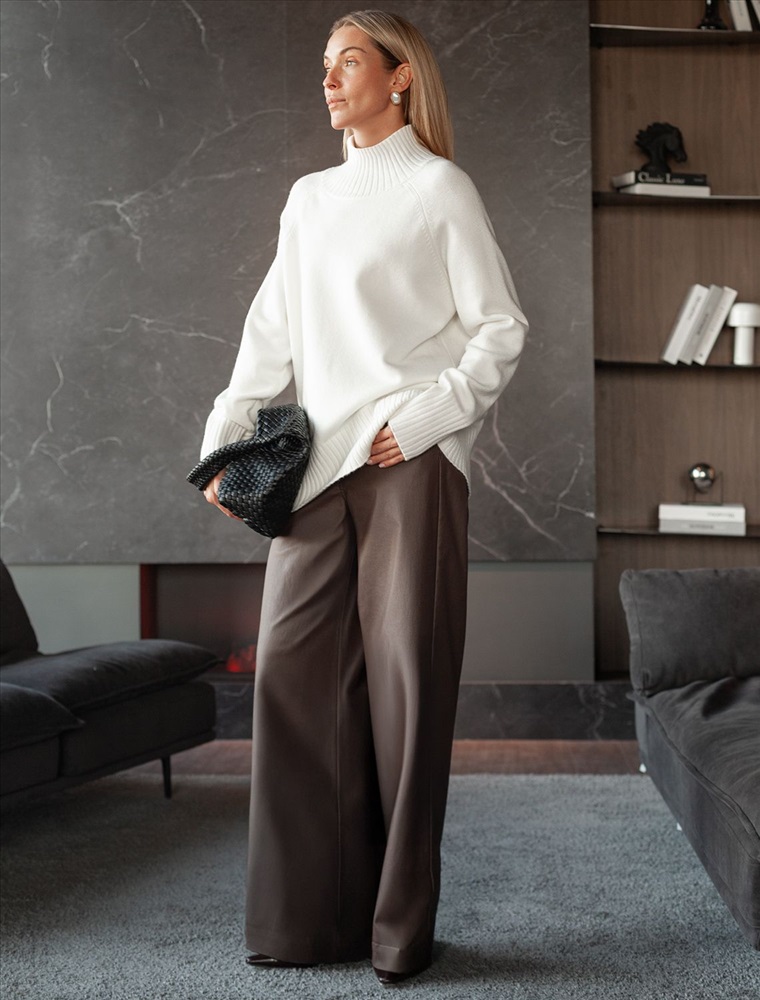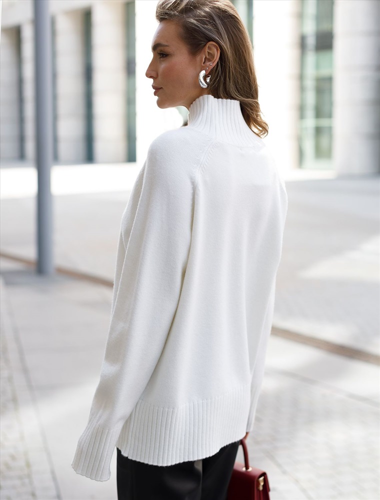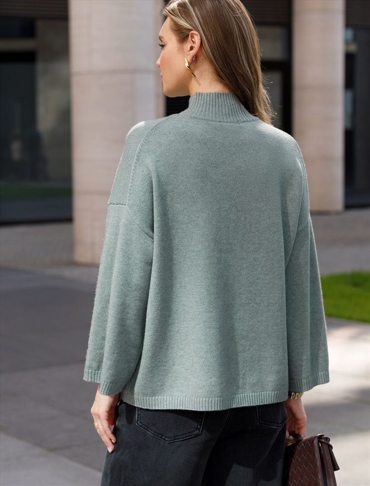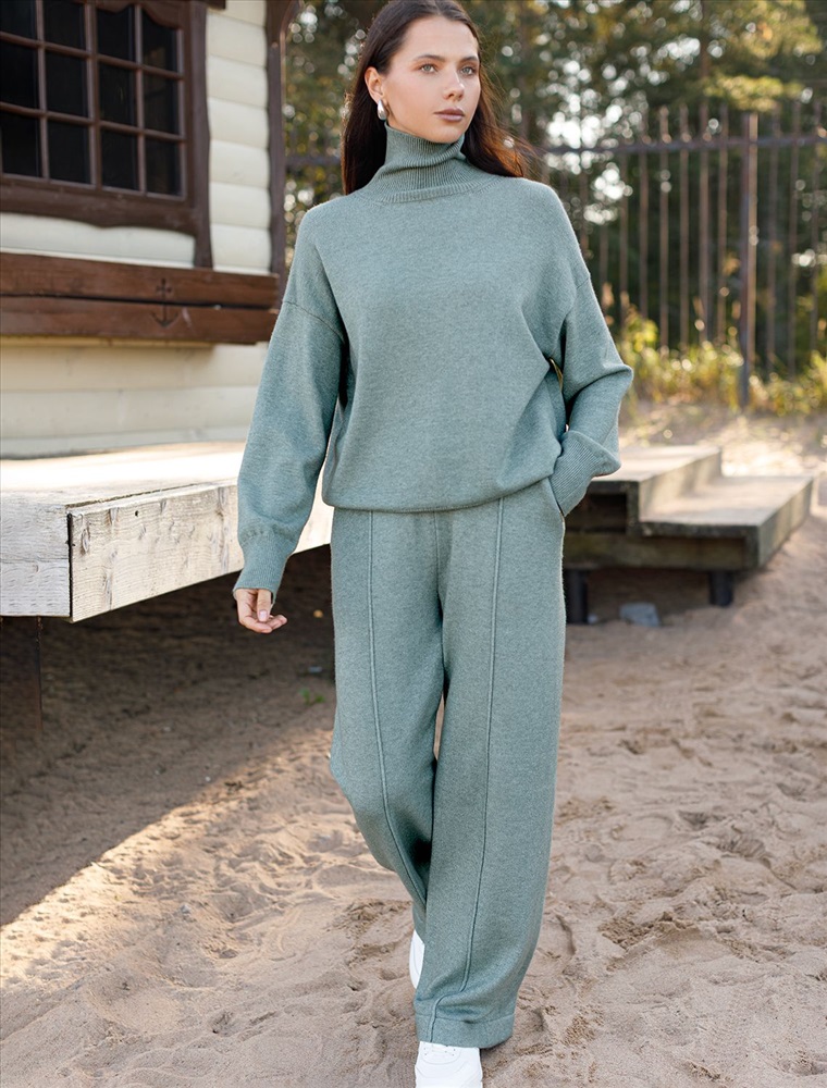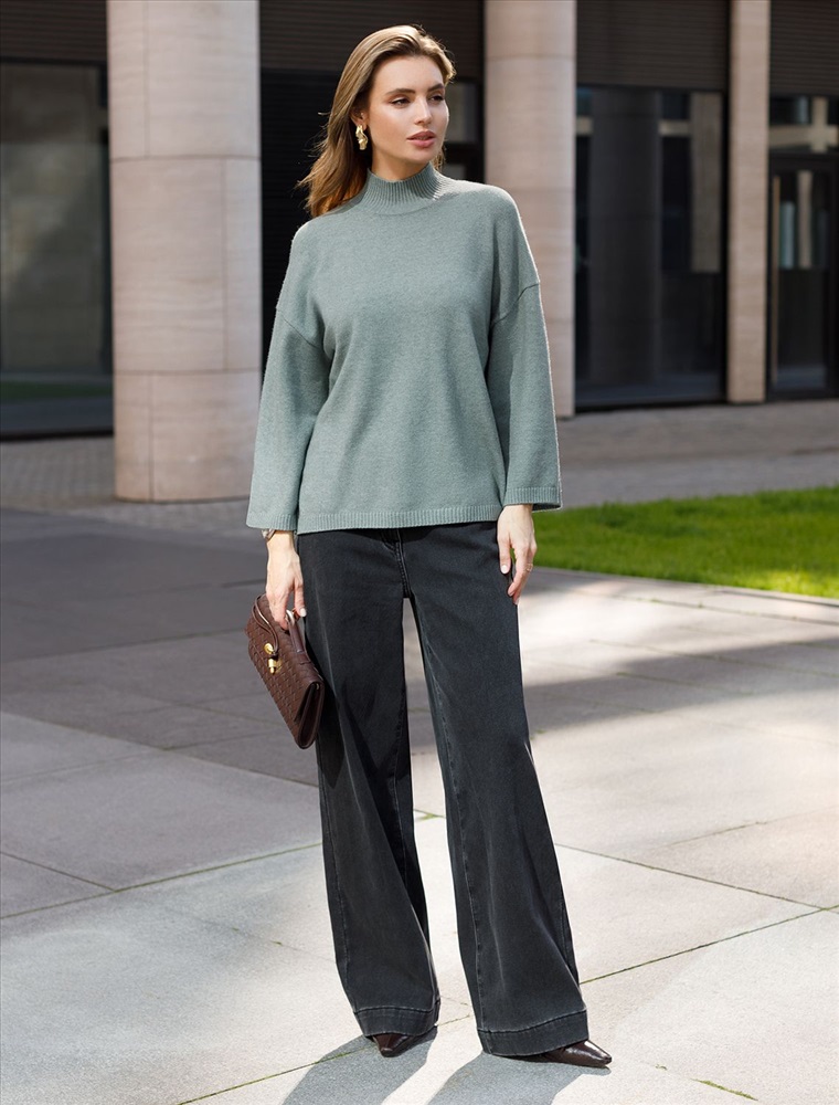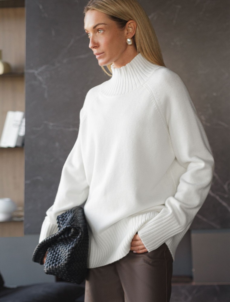 Свободный свитер с высоким воротом из мягкой пряжи с кашемиром 8 фото