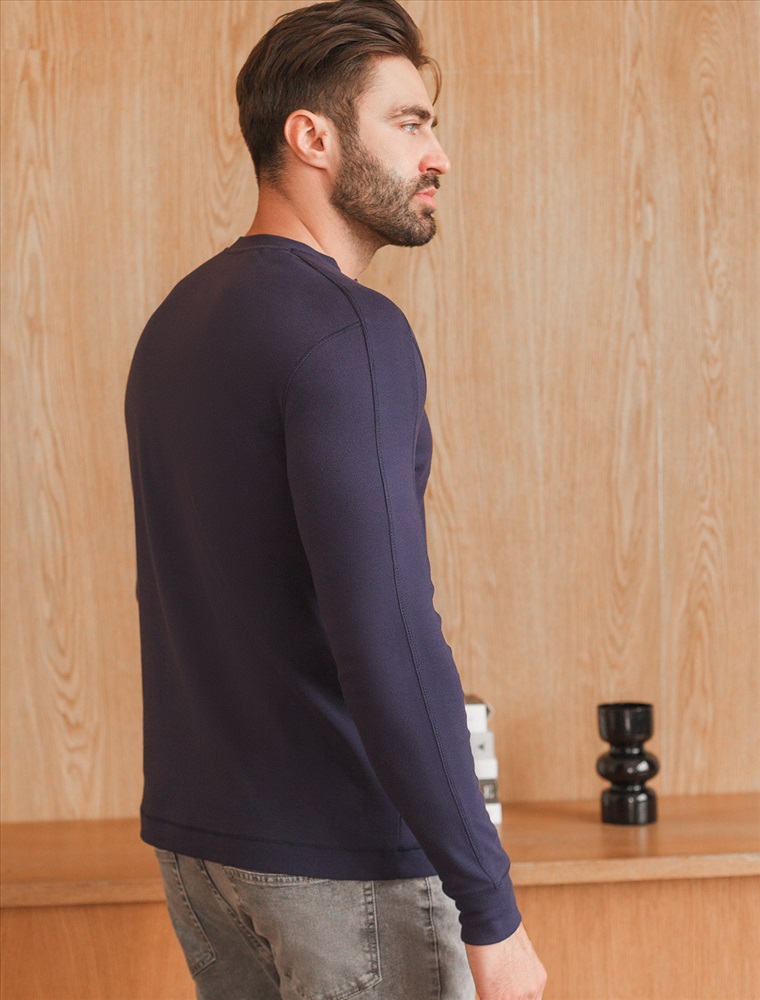 Лонгслив с воротником на пуговицах и декоративными швами из премиального хлопка с эластаном 7 фото