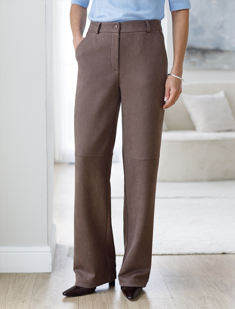 Прямые брюки из искусственной замши 7 фото