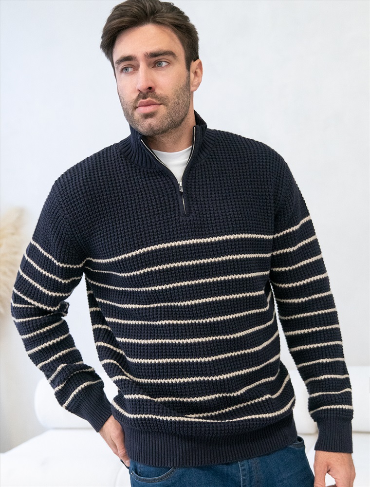 Свитер фактурной крупной вязки с металлической молнией 5 фото