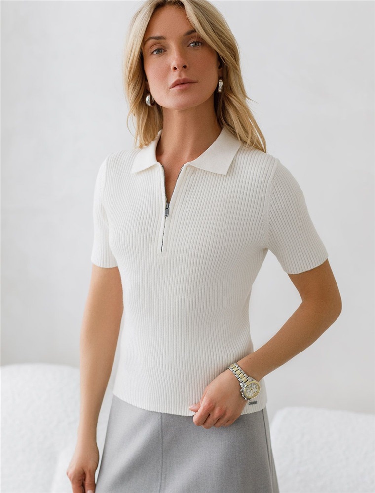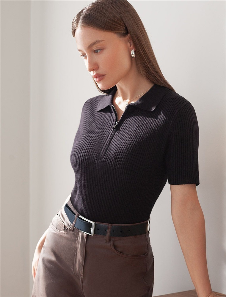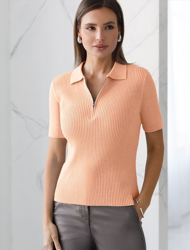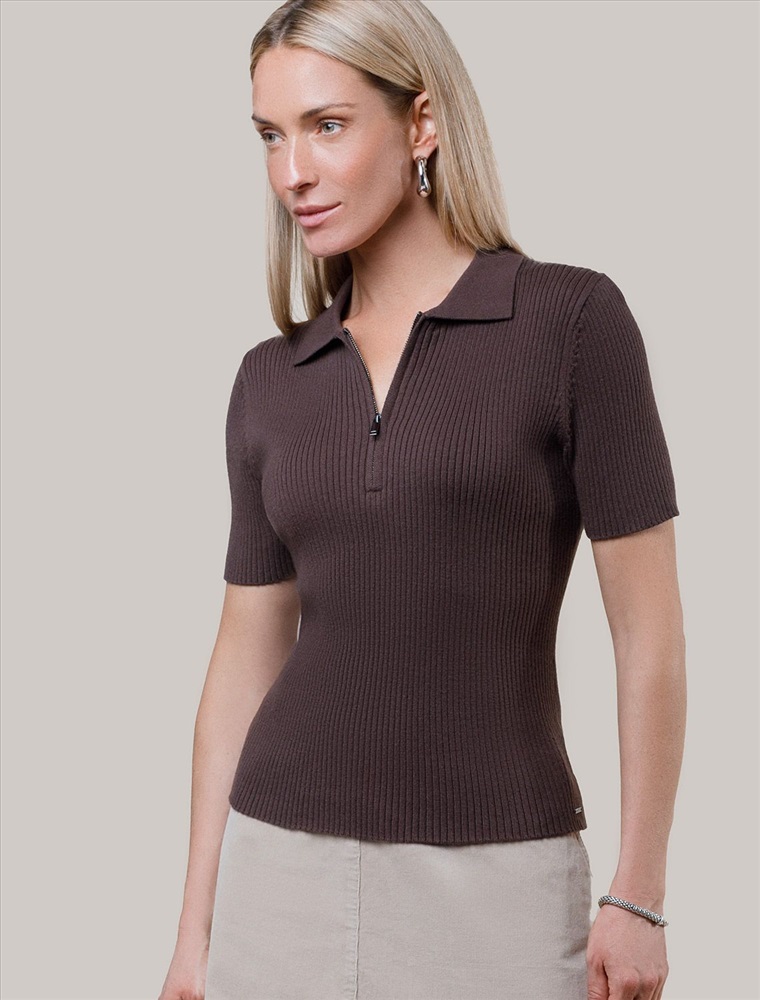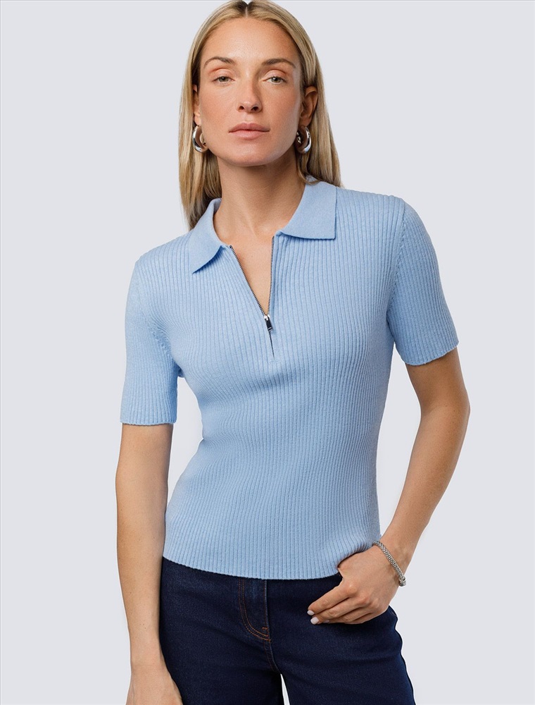 Джемпер-поло с застежкой на молнии из хлопка с кашемиром 7 фото