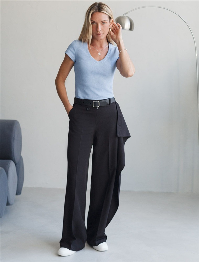 Брюки-палаццо из премиальной костюмной ткани с добавлением лиоцелла 8 фото