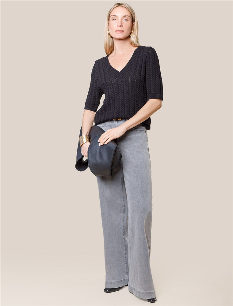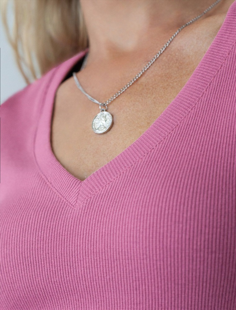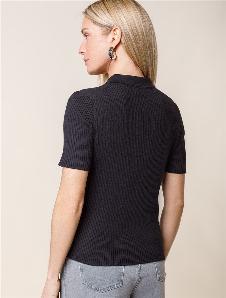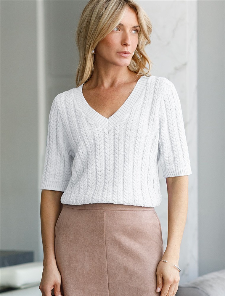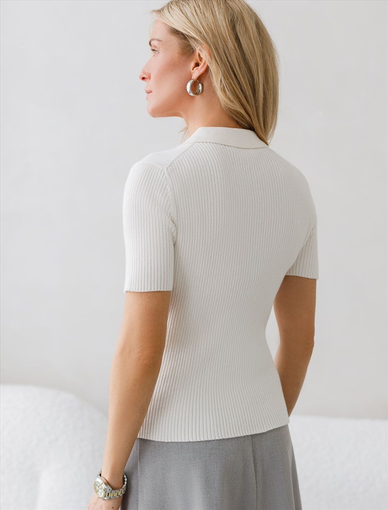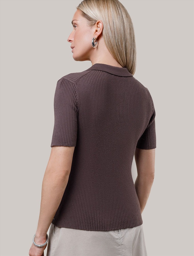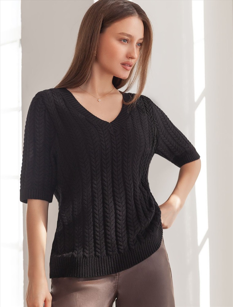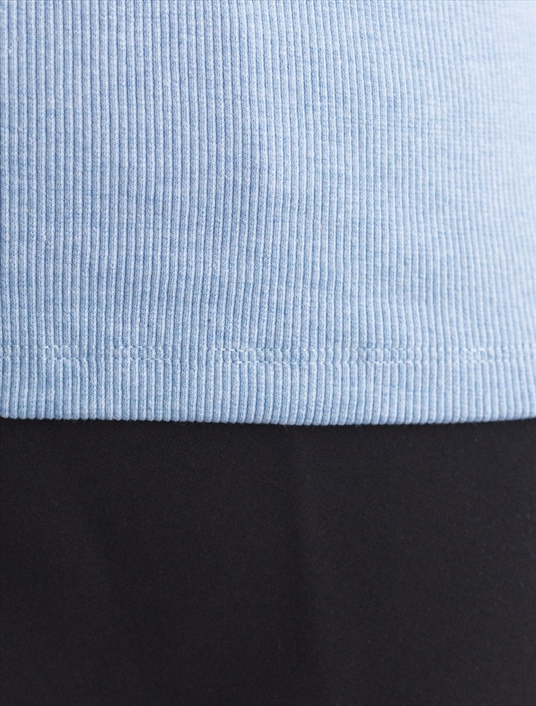 Футболка из плотного трикотажа в рубчик с V-образным вырезом 8 фото