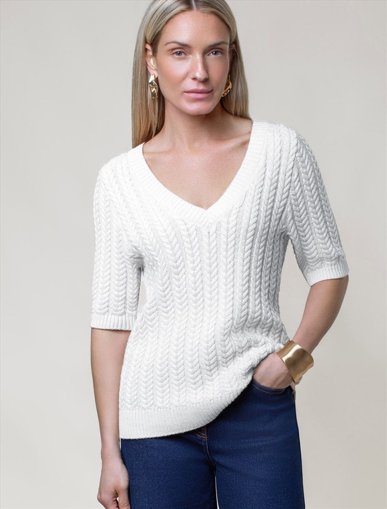 Джемпер фактурной вязки из хлопка с кашемиром 7 фото