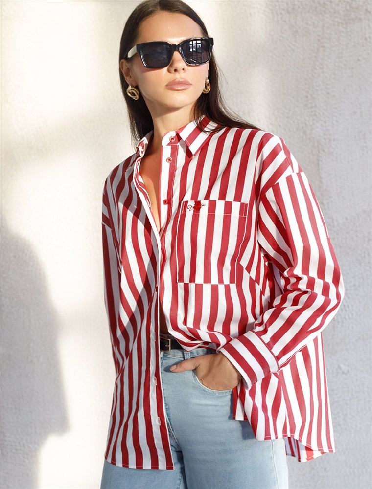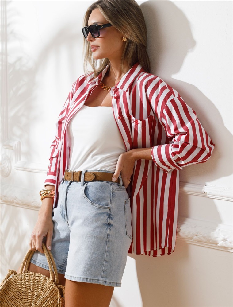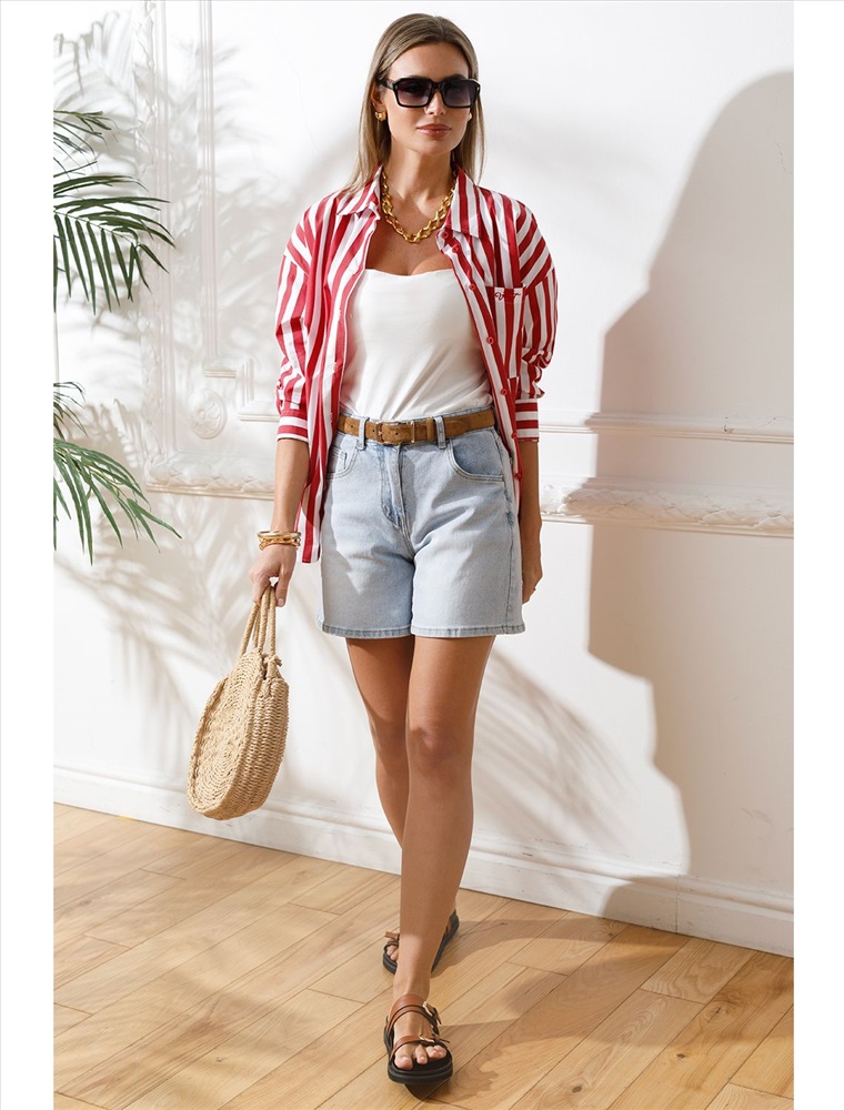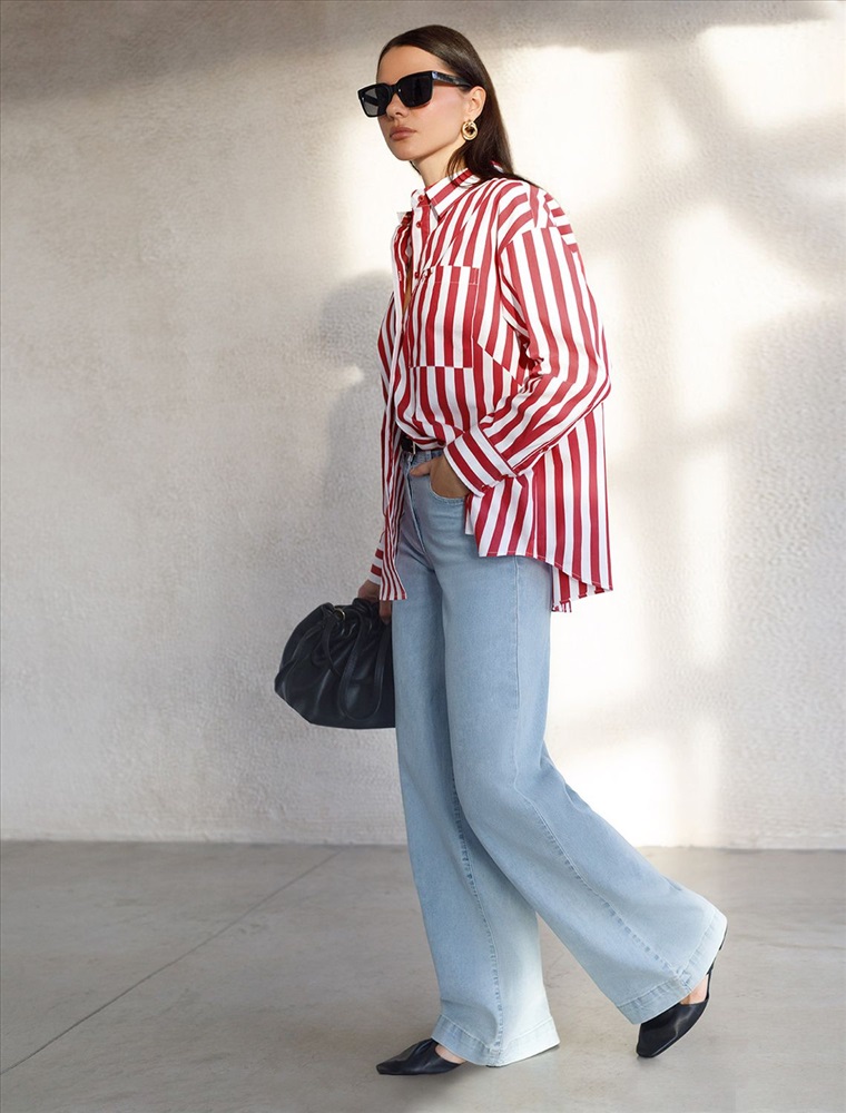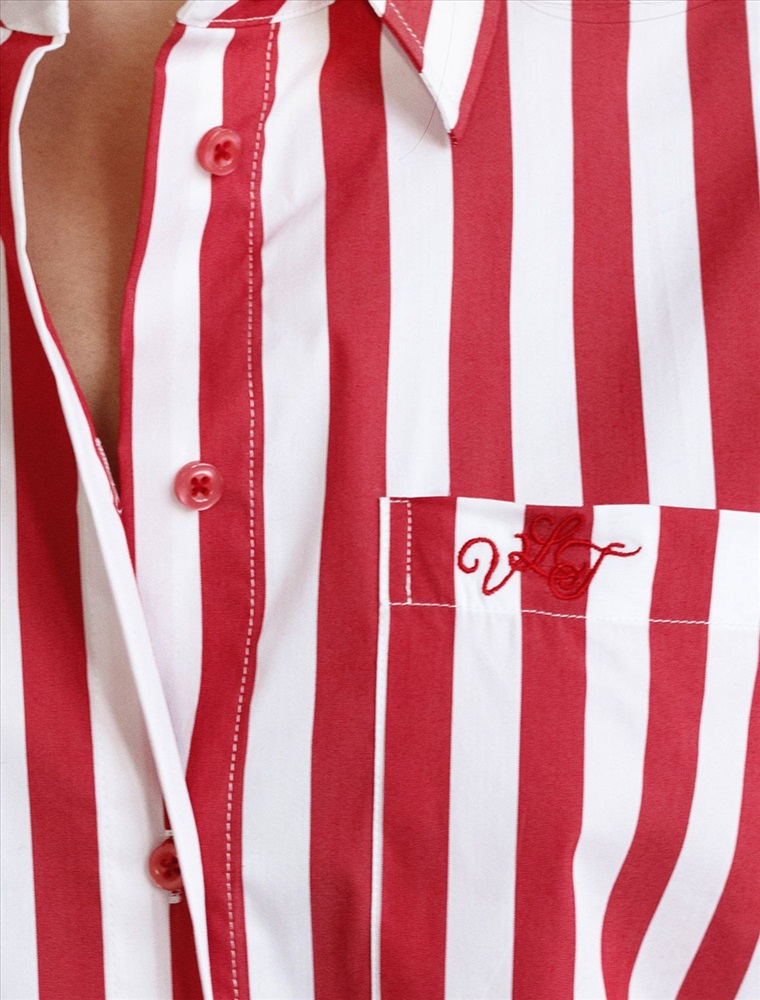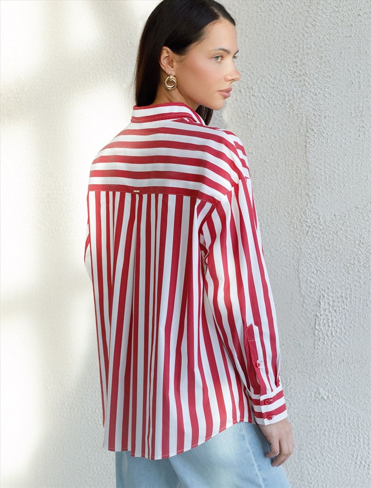 Блузка свободного силуэта в полоску из эластичного хлопка 9 фото